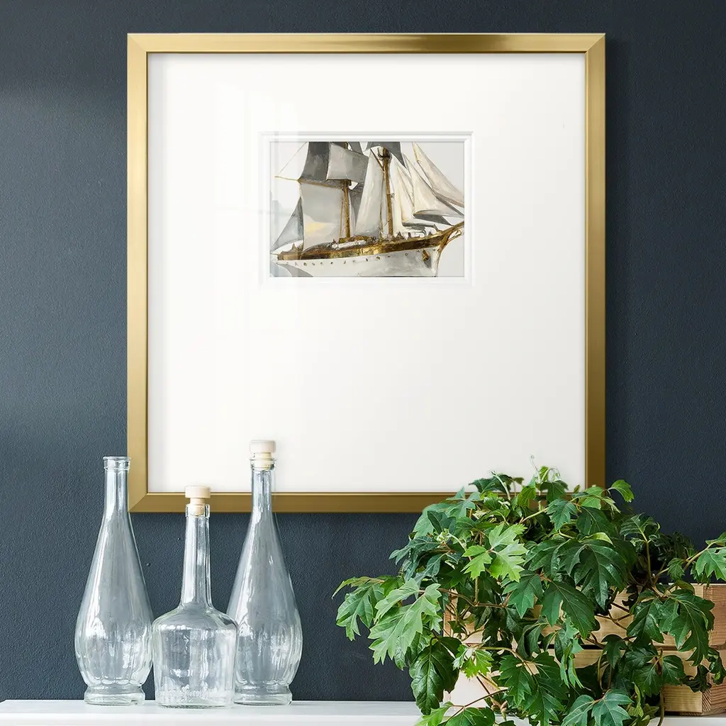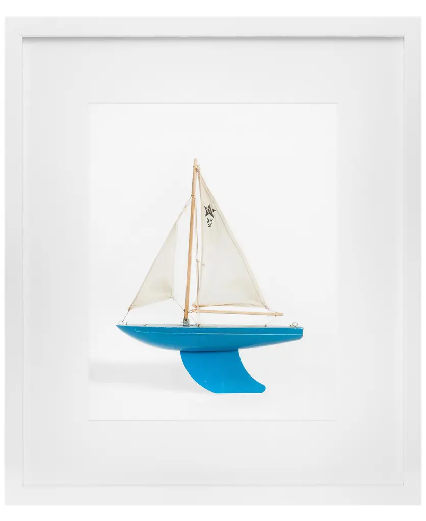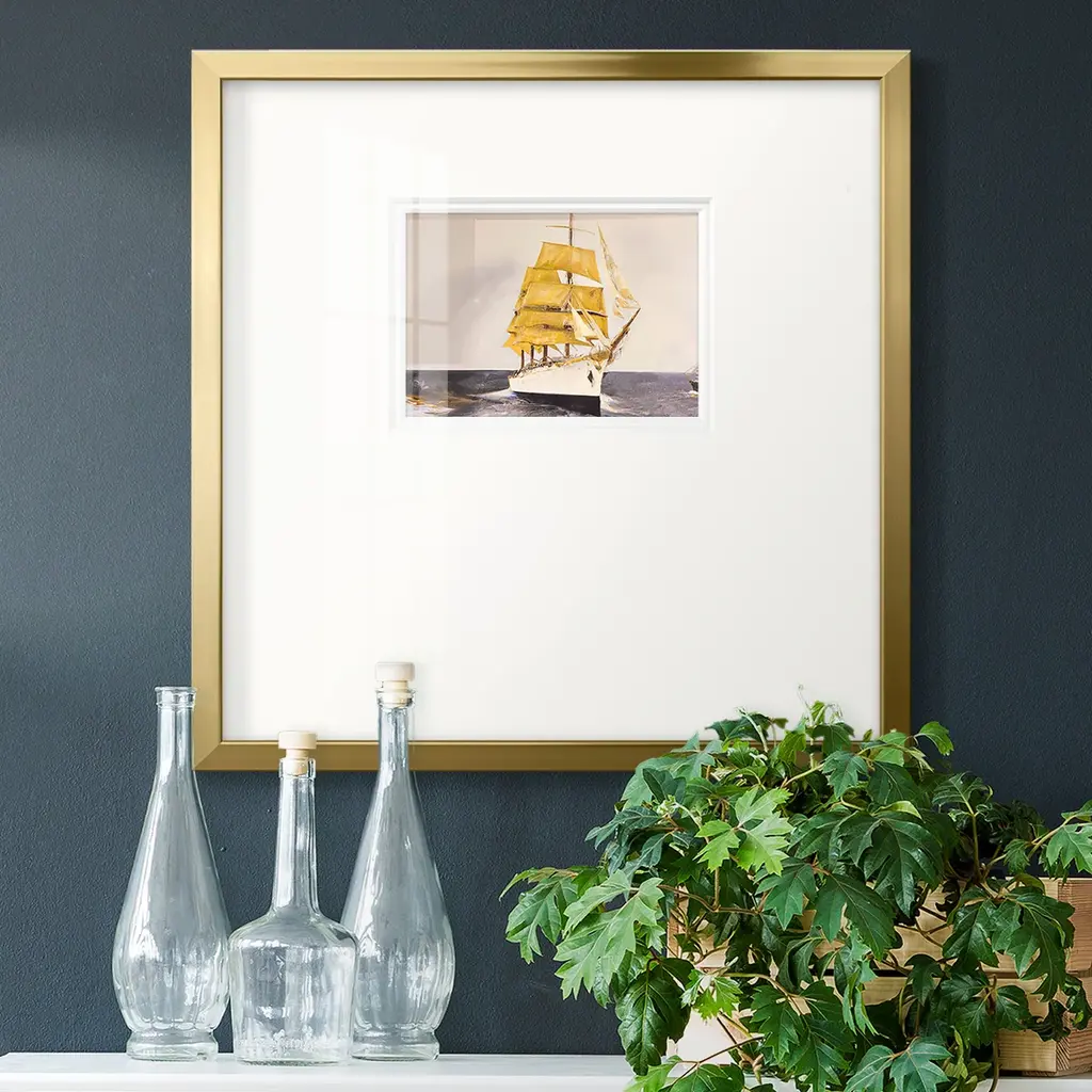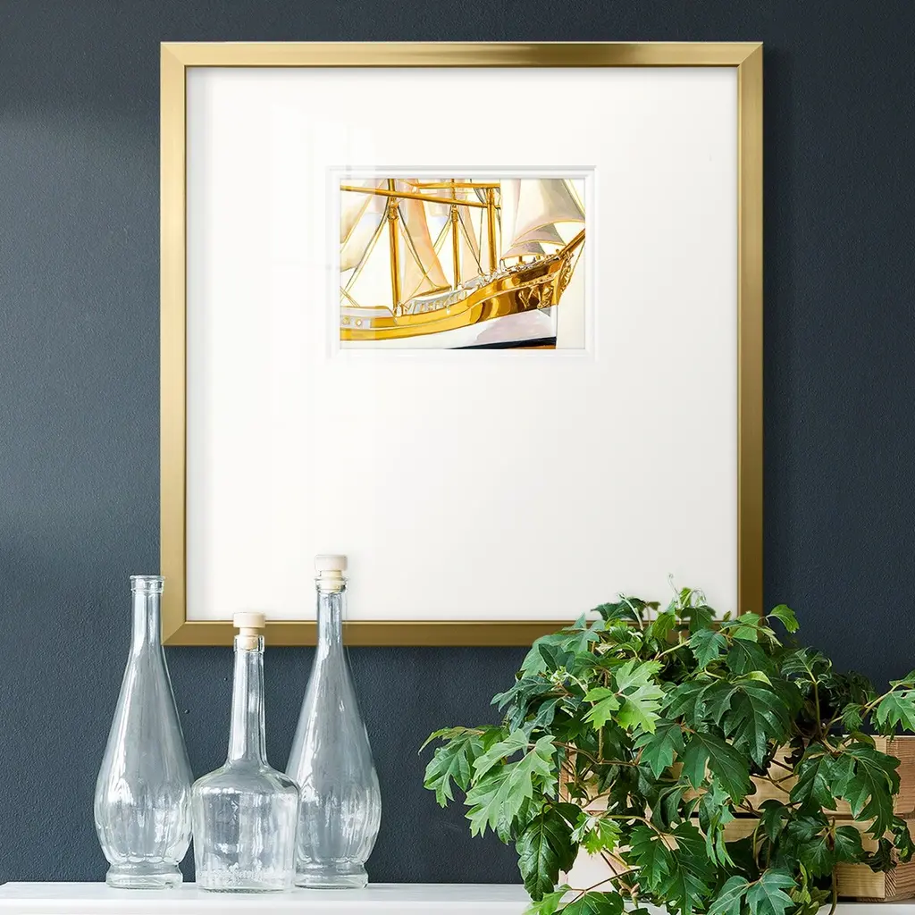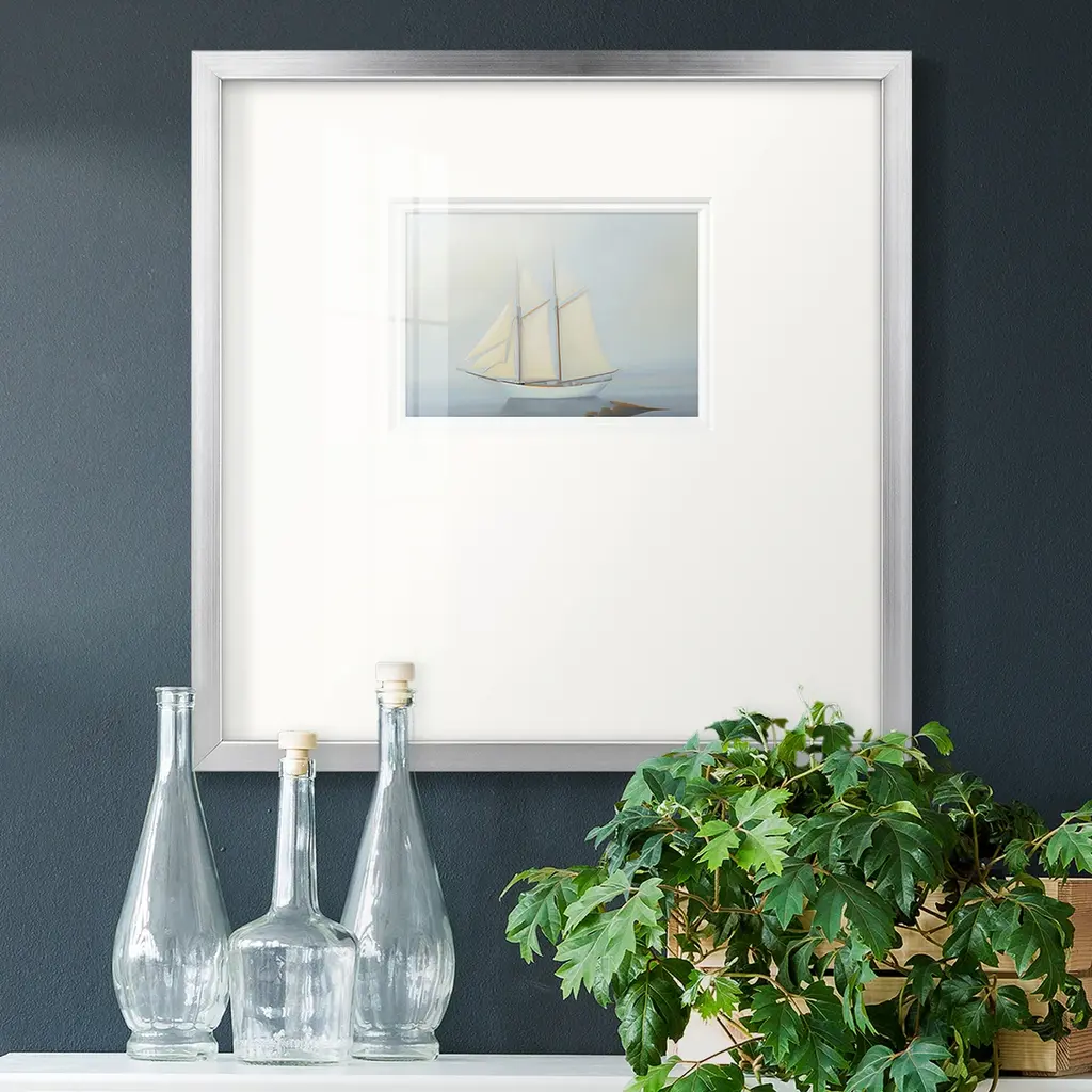 White Lacquered Metal Mirror With A Sailing Ship Top.