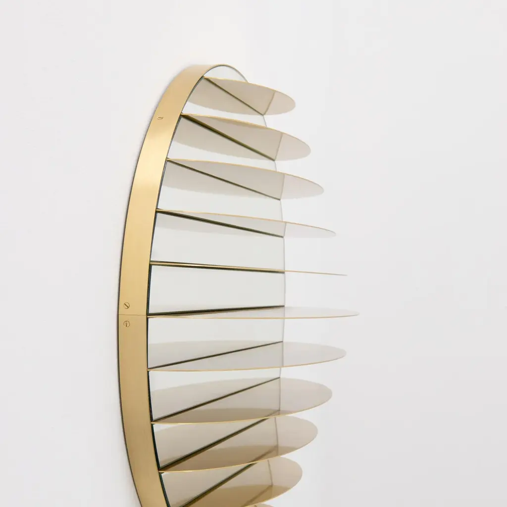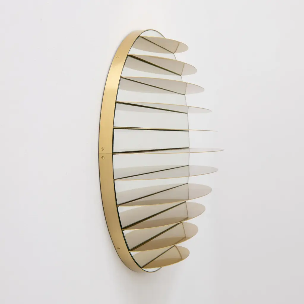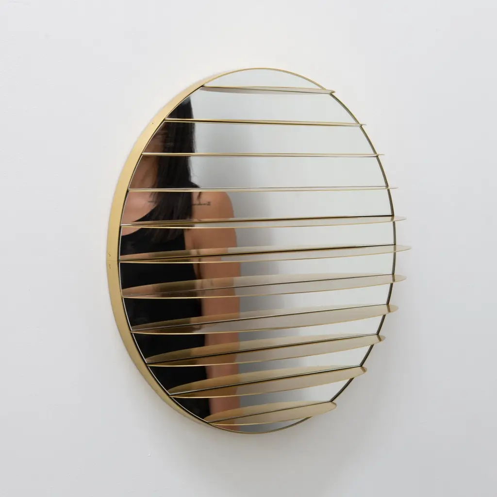 Departing from our very minimalist approach to mirror design, which very much dominates the work of our designer and co-founder Jose Alguacil Rodriguez, we are very proud to launch our latest piece in our Special Editions Collection: the Hila™ mirror. The Hila™ was inspired by the breath-taking sceneries of the Scottish Highlands, its concept having been developed while trekking in the area. Jose uses his experience and craftsmanship in mirror design to develop a modernist mirror that emulates abstractly the incredible mountainous land. The result is an exquisite and dynamic mirror that attracts your attention not for its reflection, but by its perceived movement and depth as you walk by. The Hila™ is created using solid brass and entirely hand-crafted.Diameter: 80cm / 31.5"Overall depth: 15cm / 5.9"Frame depth: 3cm / 1.18" Shipped safely and insured worldwide. All our mirrors are made on demand. Fabrication lead time for this particular mirror is approximately 8 weeks.ORDERS OF MULTIPLE MIRRORS OF THE SAME TYPE: Please contact us to receive a Packing and Shipping quote when ordering multiple mirrors of the same type. An order for multiple mirrors of the same type may not be accepted without extra packing and shipping fees. Thank you.