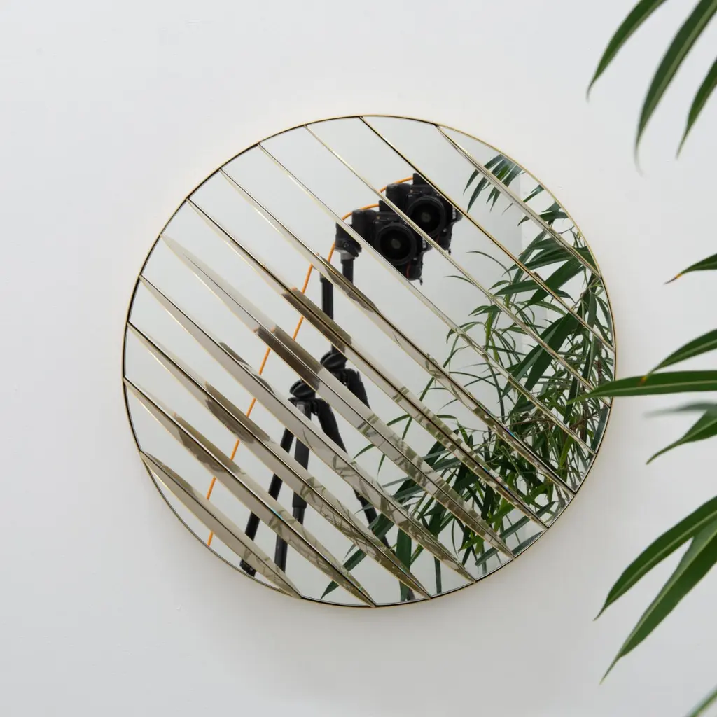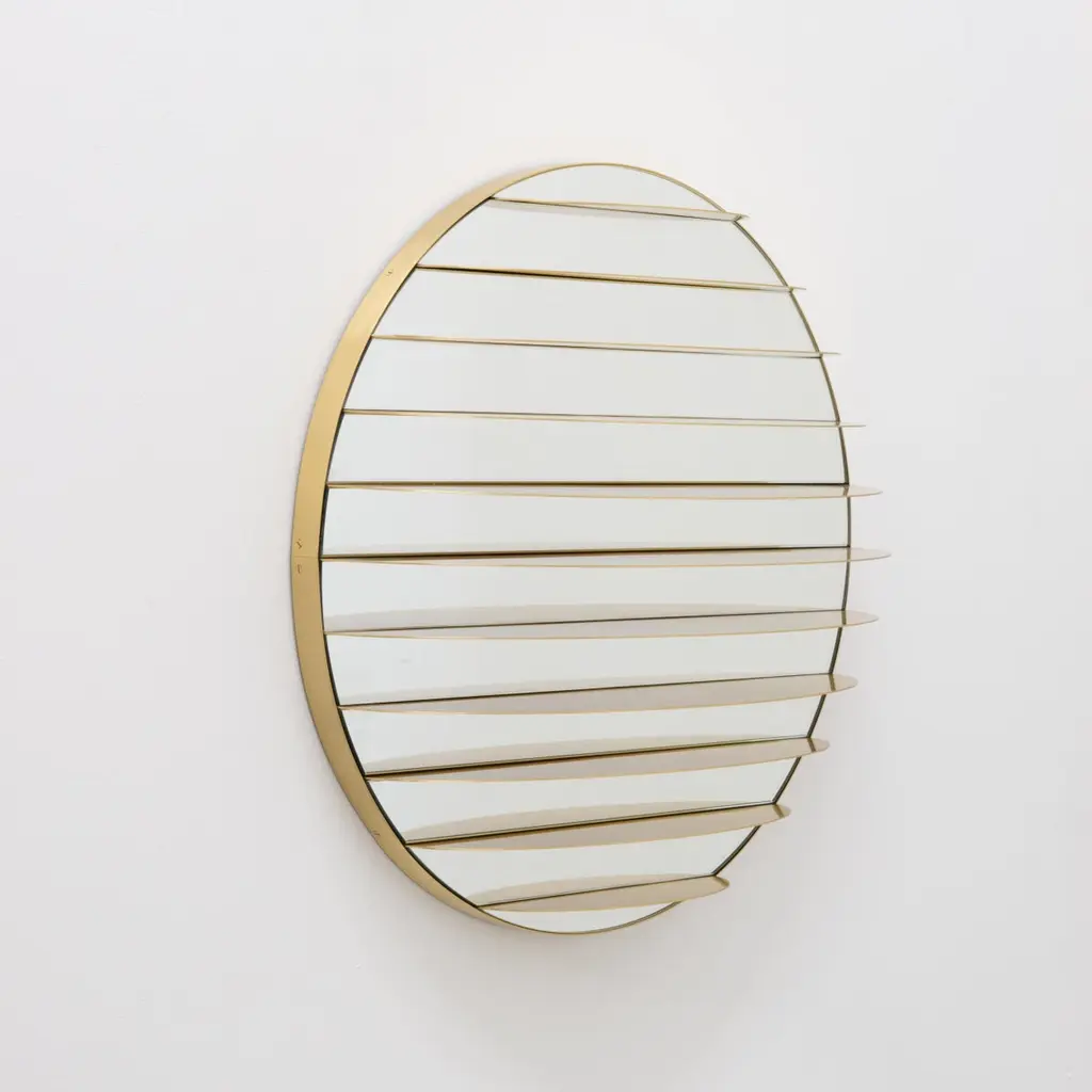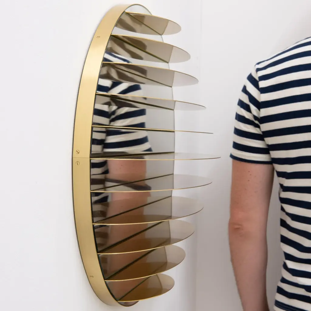 Departing from our very minimalist approach to mirror design, which very much dominates the work of our designer and co-founder Jose Alguacil Rodriguez, we are very proud to launch our latest piece in our Special Editions Collection: the Hila™ mirror. The Hila™ was inspired by the breath-taking sceneries of the Scottish Highlands, its concept having been developed while trekking in the area. Jose uses his experience and craftsmanship in mirror design to develop a modernist mirror that emulates abstractly the incredible mountainous land. The result is an exquisite and dynamic mirror that attracts your attention not for its reflection, but by its perceived movement and depth as you walk by. The Hila™ is created using solid brass and entirely hand-crafted.Diameter: 80cm / 31.5"Overall depth: 15cm / 5.9"Frame depth: 3cm / 1.18" Shipped safely and insured worldwide. All our mirrors are made on demand. Fabrication lead time for this particular mirror is approximately 8 weeks.ORDERS OF MULTIPLE MIRRORS OF THE SAME TYPE: Please contact us to receive a Packing and Shipping quote when ordering multiple mirrors of the same type. An order for multiple mirrors of the same type may not be accepted without extra packing and shipping fees. Thank you.
