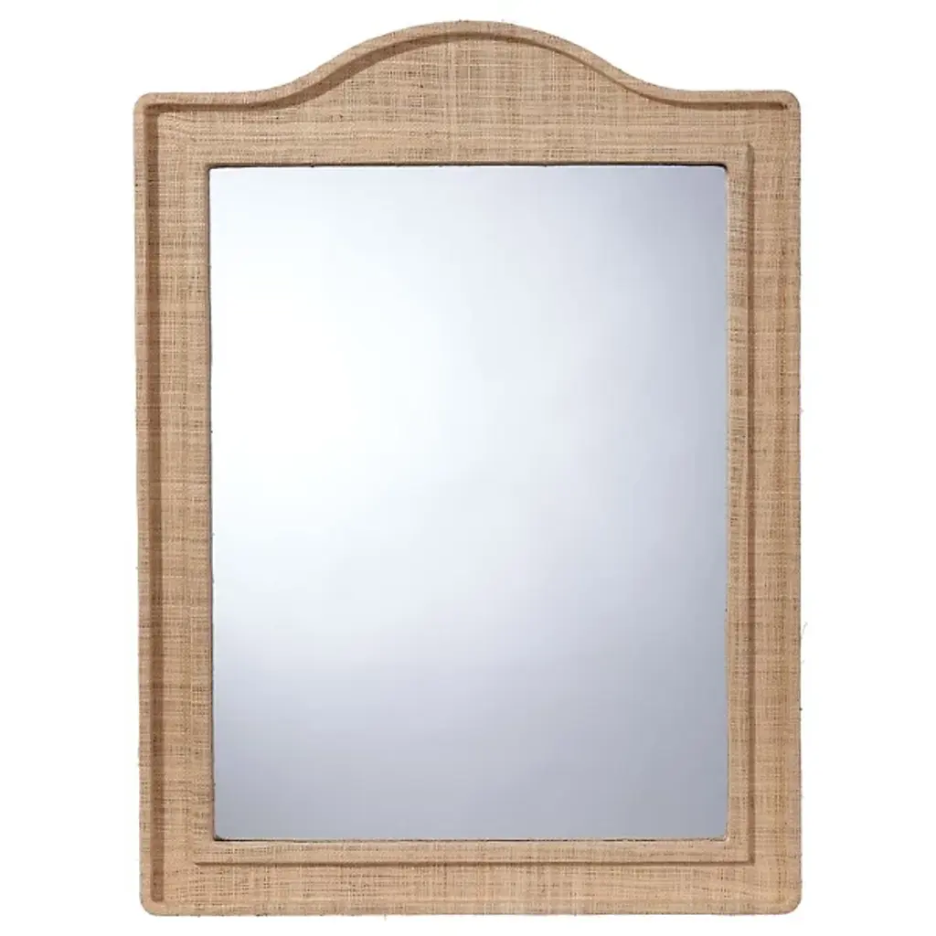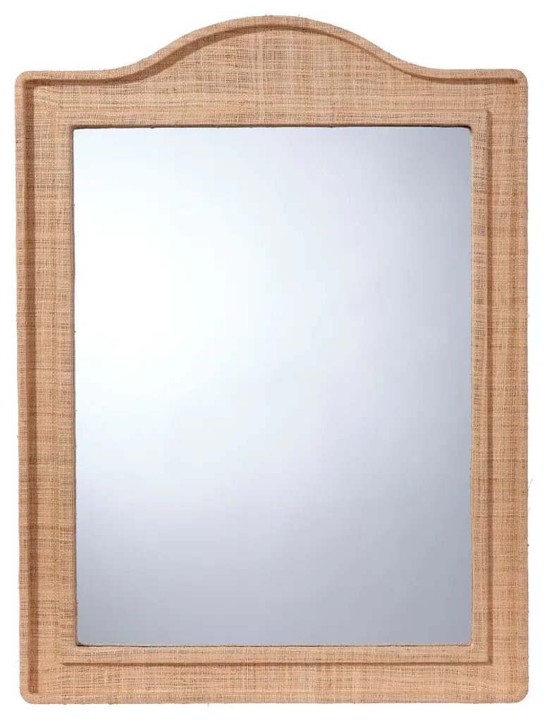 Lusciously textural with a frame formed of tightly woven natural raffia, these wall mirrors bring light, movement, and a lovely touch of warmth to a home. Their softness makes them an ideal addition to bedrooms or entryways. Each is masterfully crafted, down to their fully finished backs, to last and be loved for years to come. Handmade of 100% Natural RaffiaNon beveled glass mirrorMirror can hang verticallyArch DesignWall Mounted The inherent variations in tone and texture of natural raffia is preserved, to create pieces rich in detail and natural beauty. These unique imperfections give our products character and individuality, with each piece having its own personality. We''ve done our best to represent product as closely as possible; however, different lighting and settings in photography, phone or computer settings may slightly affect color and appearance. Mirror Surface 27.5"H x 21"WD Ring HangerFrame: 2.75" to 5.5" WMDF Backing, Black FeltNot Damp RatedCare Instructions: Wipe frame with a soft, dry cloth. Wipe glass with standard glass cleaner. DO NOT use cleaners or abrasives on mirror frame.