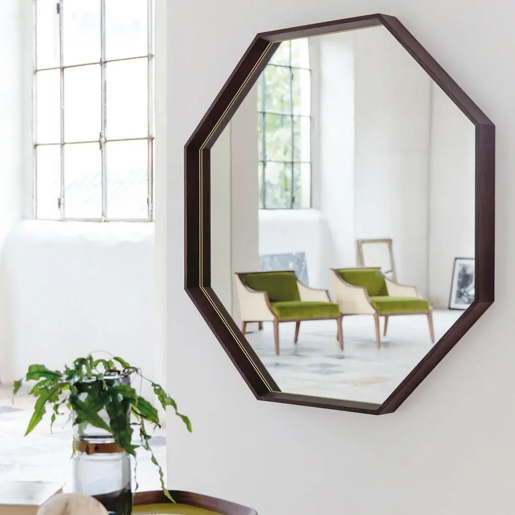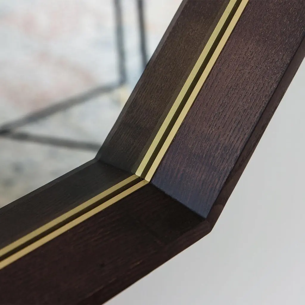 Mirror Hocto ash with solid ash structurein walnut finish. With mirror glass. Framewith brushed brass inserts.