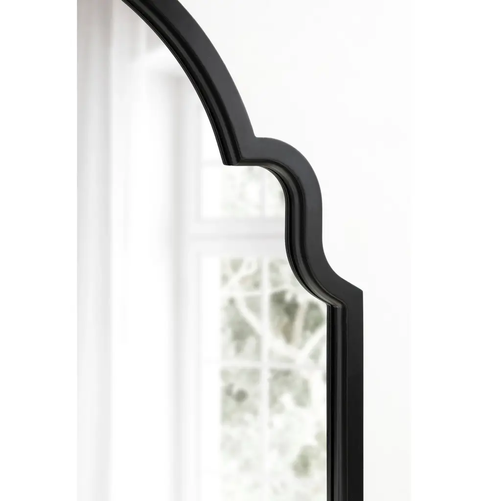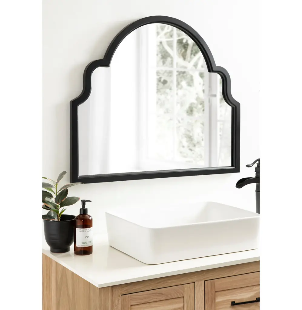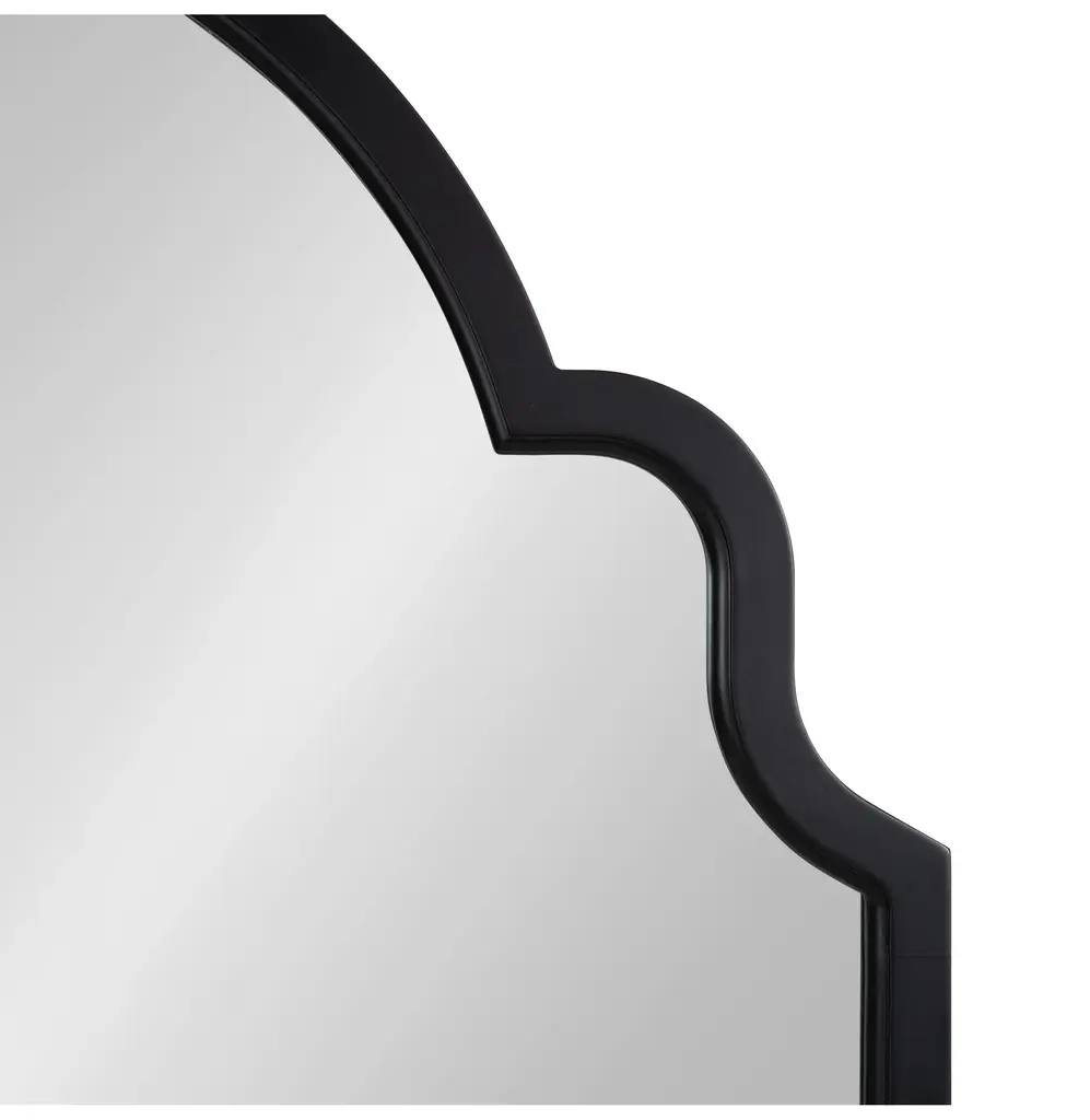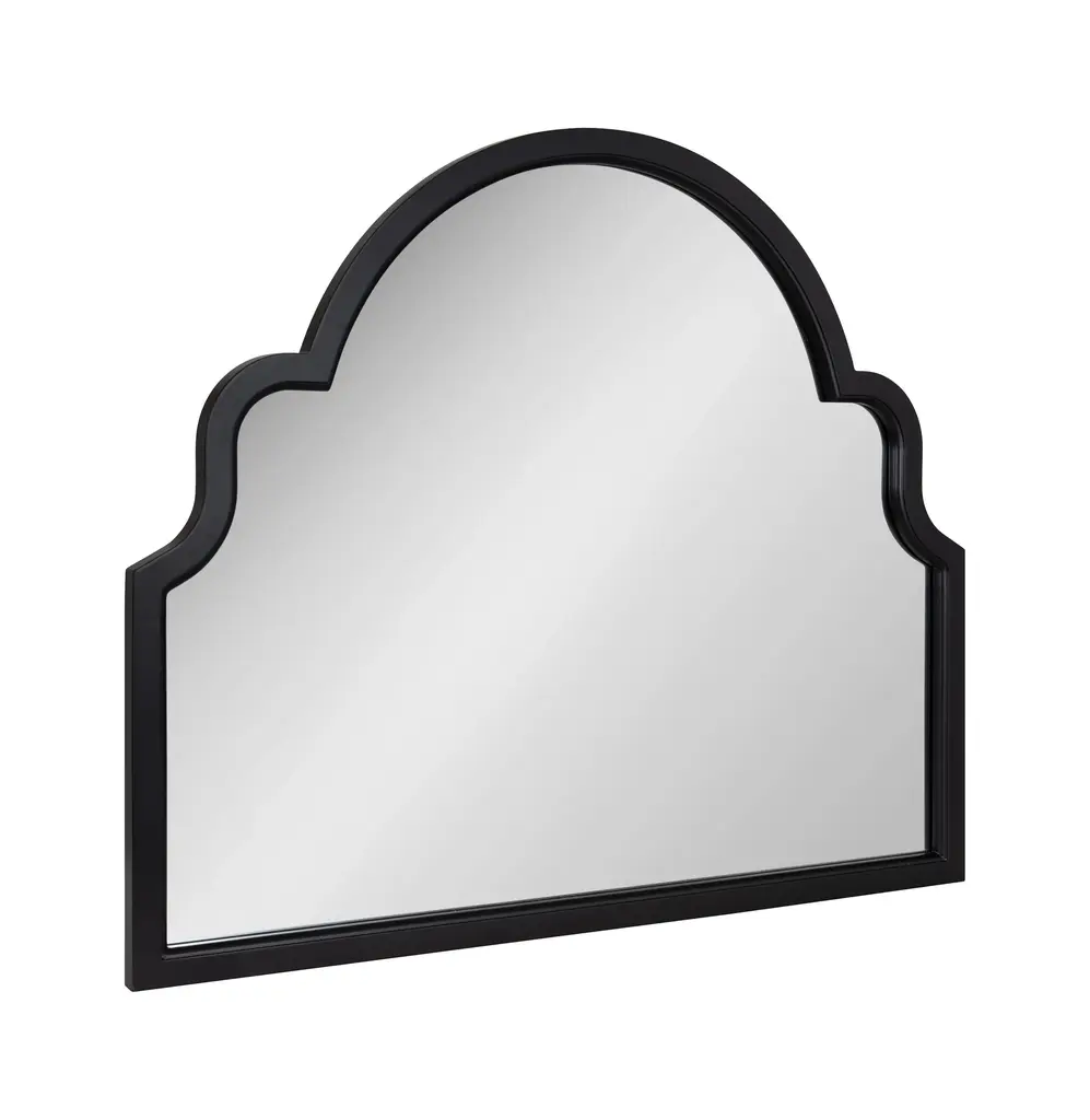 The Hogan wall mirror offers glamour and charm to create a bold wall display in your home. This accent mirror features a beautiful, Moroccan-inspired arched shape, complete with scalloped corners on either side of the piece. This lovely design draws the eye into a breathtaking focal point to create the ultimate modern statement for any wall. Its scalloped frame was crafted from wood, giving it a robust quality and a sophisticated look. The Hogan mirror's overall dimensions are 36 inches wide by 1 inch deep by 30 inches tall, creating a horizontal display in your bedroom, entryway, living room, or office. You could also add the Hogan mirror to your bathroom to make a glamour-themed vanity. Adding a decorative mirror like the Hogan to your wall enhances its space by spreading light, making it appear more open and vibrant. The elegant Hogan mirror hangs in only a matter of minutes, utilizing resilient metal D-ring hangers attached to the back of its poplar wood frame.Modern Look: This bold wall mirror features a Moroccan-inspired horizontal arch, with scalloped detailing on both sides. These beautiful details combined with the lovely black finish give the Hogan a glamorous yet modern aestheticQuality Material: The robust frame of the Hogan mirror was built out of lightweight wooden material that is resilient and high-quality for years of glam displayLarge Size: As a large statement mirror, the Hogan mirror is 36 inches wide by 1 inch deep by 30 inches tall, making it a bold focal point in any spaceVersatile: The Hogan is fabulous for creating a conversation-starting wall display, a modern vanity, or enhancing the vibrancy of your favorite roomEasy to Hang: Metal D-ring hangers are attached to the back of the scalloped frame for easy installation in a matter of minutes