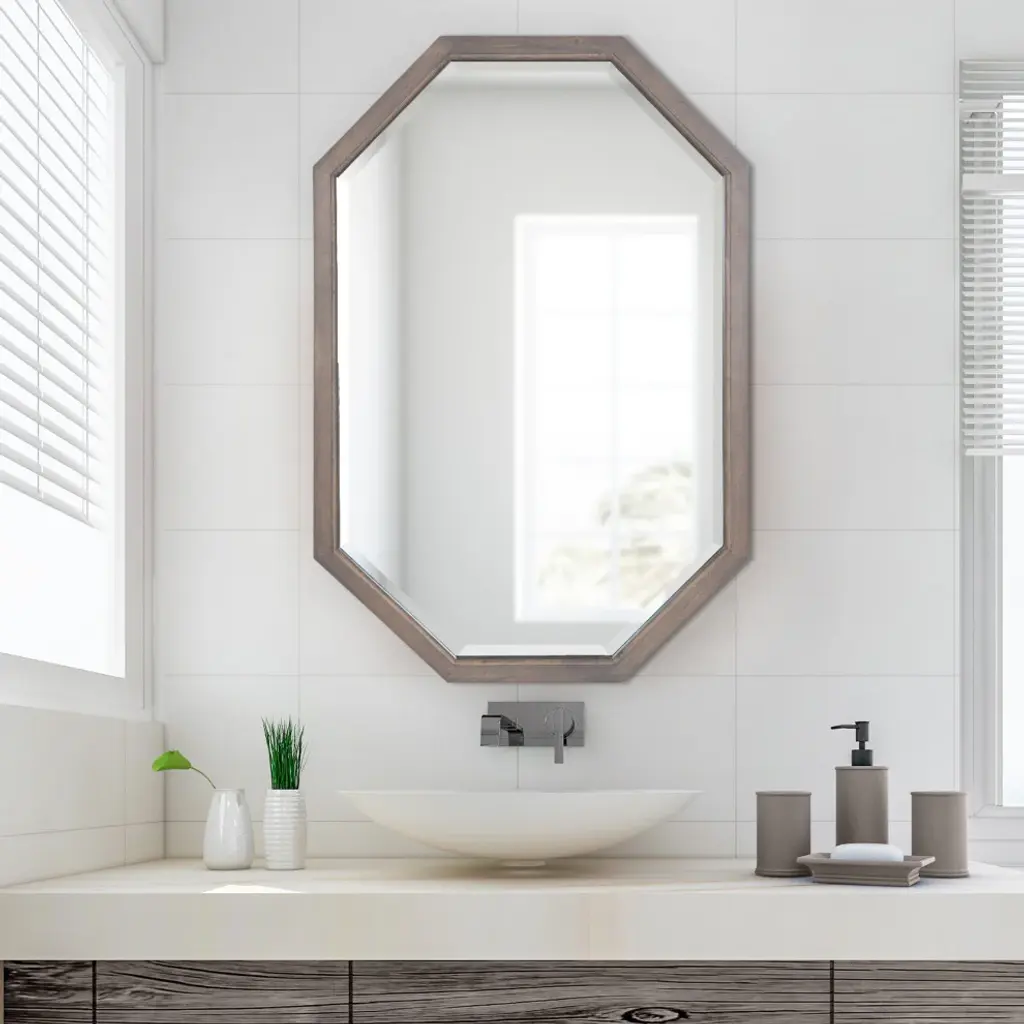 Hogan Framed Octagon Wall Mirror, Gray, 24x36