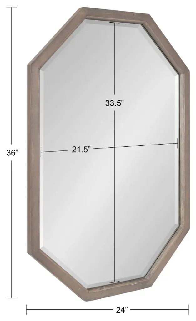 The Hogan mirror is the perfect addition to your farmhouse-inspired home. This mirror puts a modern twist on the farmhouse aesthetic, featuring an octagonal shape that draws the eye and adds a chic dimension to your wall. The frame of the Hogan is made from solid wood and features a rustic graywash finish reminiscent of vintage decor pieces. This frame gives the Hogan a resilient quality that lasts for multiple years of display. Its overall dimensions are 24 inches wide by 1 inch deep by 36 inches tall, making it a commanding presence for any room. If you''re renovating your bathroom, the Hogan is fantastic as a bathroom mirror above a single or double vanity. Adding this reflective accent as a decorative focal point increases the vibrancy of your space while making it appear brighter and dimensional. Hang it in your entryway, bedroom, dining room, or living room to create a fun and unique statement. This mirror is easy to mount on your wall regardless of where you hang it with the metal D-ring hangers, allowing it to hang in multiple orientations. • FARMHOUSE ROOTS: The Hogan takes inspiration from farmhouse aesthetics with a rustic graywash finish that brings a sense of coziness and warmth to your home• QUALITY MATERIAL: The solid wood frame creates a robust display piece that is resilient enough for multiple years of use• AMPLE SIZE: The overall dimensions of the Hogan are 24 inches wide by 1 inch deep by 36 inches tall, making it a commanding focal point in a variety of spaces• VERSATILE: This geometric wall accent is perfect for use as a bathroom mirror over your vanity or as a traditional accent piece in your living room, entryway, or bedroom• EASY TO HANG: Use the D-ring hangers attached to the back of the frame for quick and easy installation