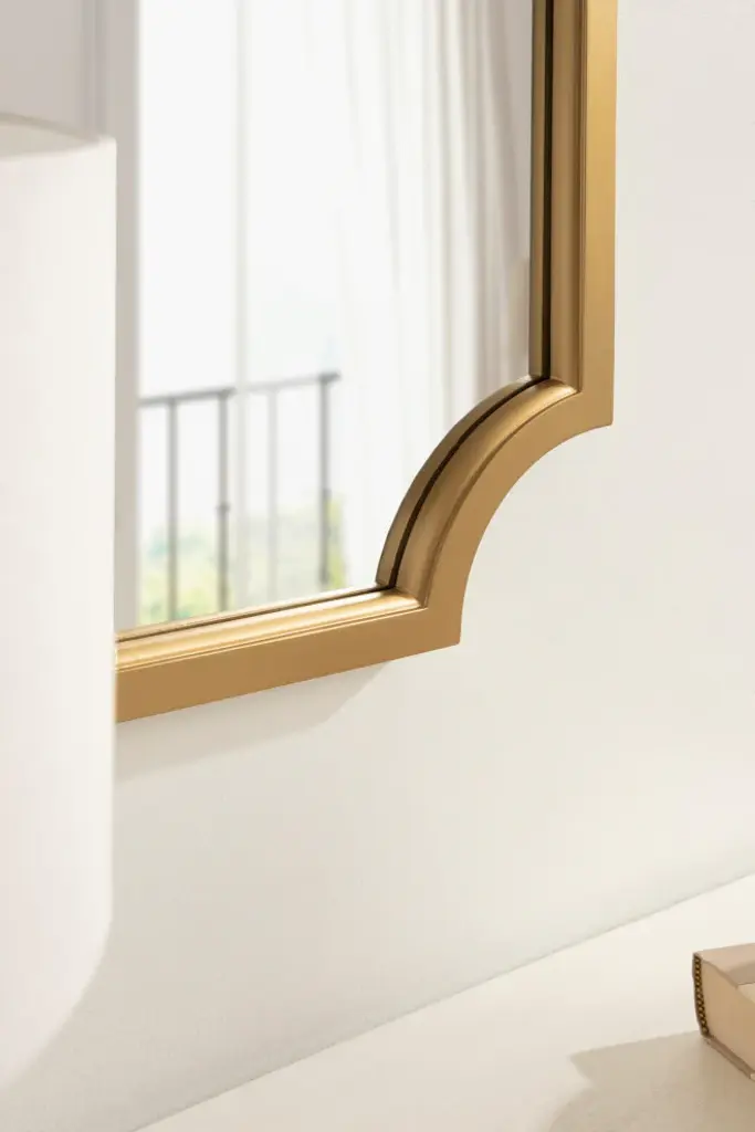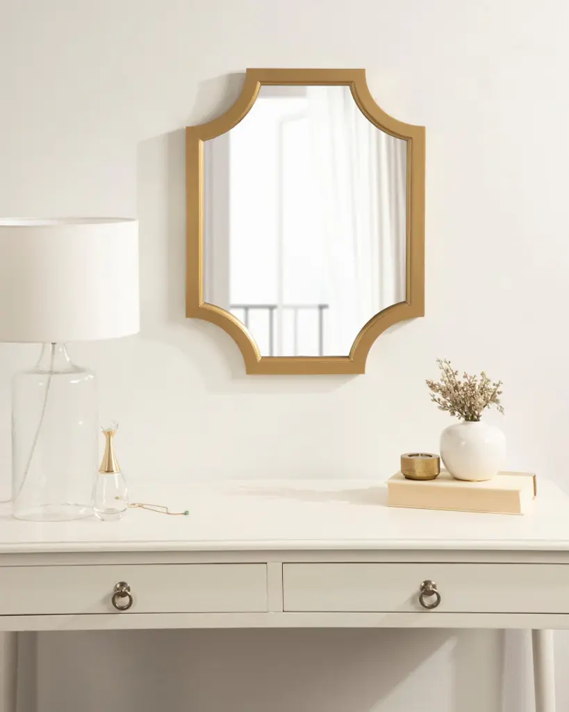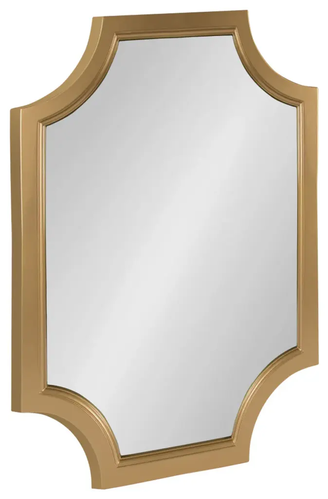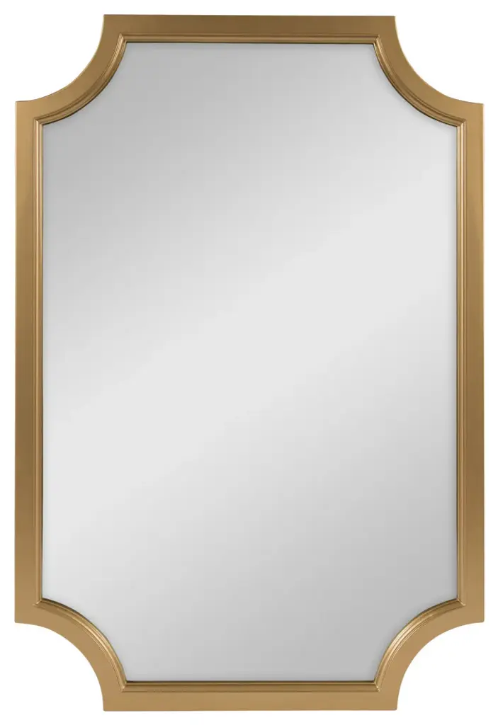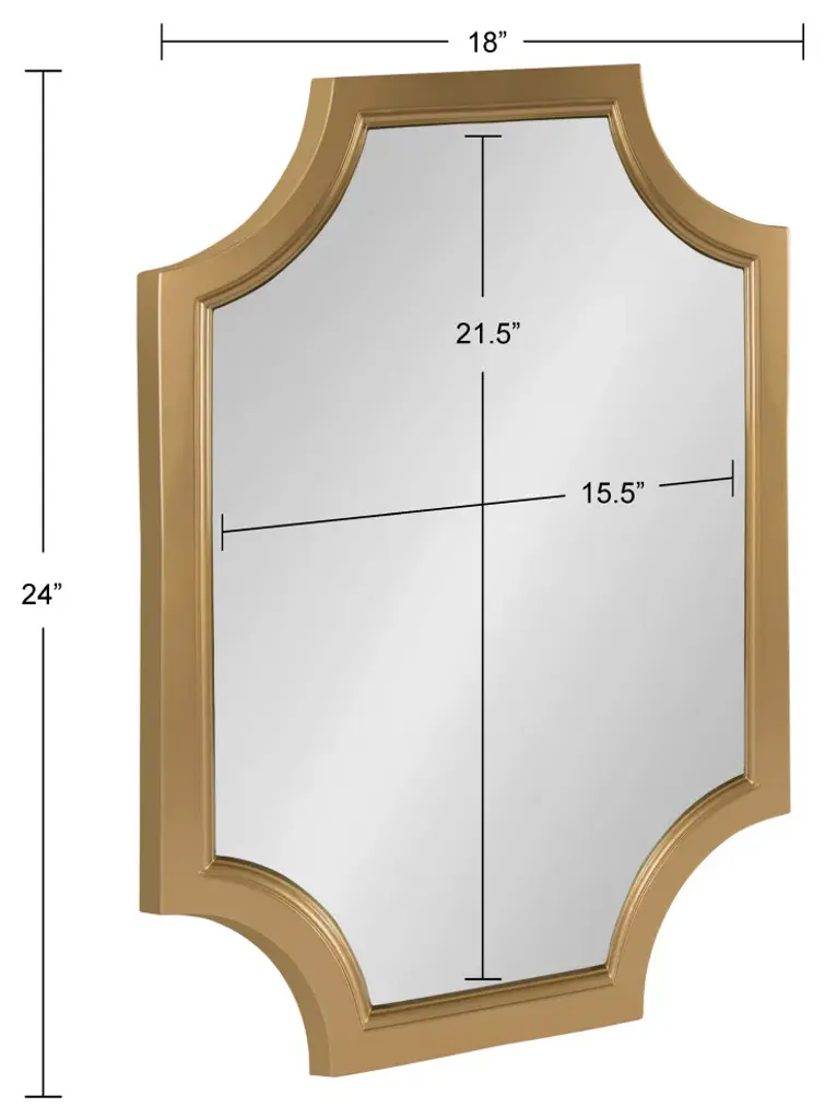 Add vibrancy and illumination to your home with a chic and modern wall mirror. The Hogan mirror utilizes a glamorous look with a scalloped shape and a lovely gold finish on its frame. Its frame was constructed from a rich blend of wooden materials, giving the Hogan a sophisticated, smooth look. This contemporary wall mirror''s overall dimensions are 18 inches by 1 inch by 24 inches, making it a dynamic and striking decorative feature on your wall. It looks beautiful as a statement piece in your living room, bedroom, entryway, or dining room. Its clean, ample surface area also makes the Hogan a superb bathroom mirror over your vanity. Adding a mirror to a room in your home enhances the space''s vibrancy and dimension, creating a more inviting open environment. The Hogan looks stellar on its own as an eye-catching focal point or in a modern display of multiples. It features D-ring hangers attached vertically and horizontally, allowing for a versatile display in a matter of minutes.• MODERN LOOK: Inspired by glamorous aesthetics, the Hogan mirror features a scalloped shape with a gold finish, blending in well with various decor spaces• QUALITY MATERIAL: The frame was made from a rich blend of sturdy and resilient wooden materials• AMPLE SIZE: The overall dimensions of this mirror are 18 inches wide by 1 inch deep by 24 inches tall, making a bold and dimensional focal point• VERSATILE: The Hogan wall mirror hangs vertically and horizontally, making it a versatile accent that''s great for display in a bedroom, bathroom, living room, or entryway• EASY TO HANG: Hang this decorative mirror in a matter of minutes with D-ring hangers attached to the back of the frame