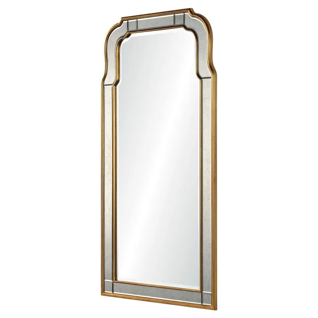 When looking to add a gold arch mirror to a room that can also stand as a work of art, our Holiday Hollywood Regency Antique Gold Leaf Frame Arch Wall Mirror is the right choice. With an antiqued gold leaf finish and an elegant shape, this mirror brings out the glamour in any room.