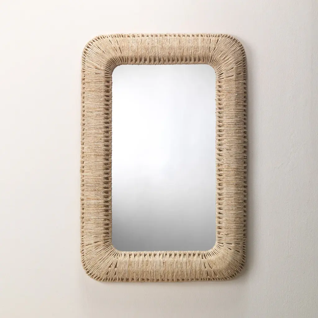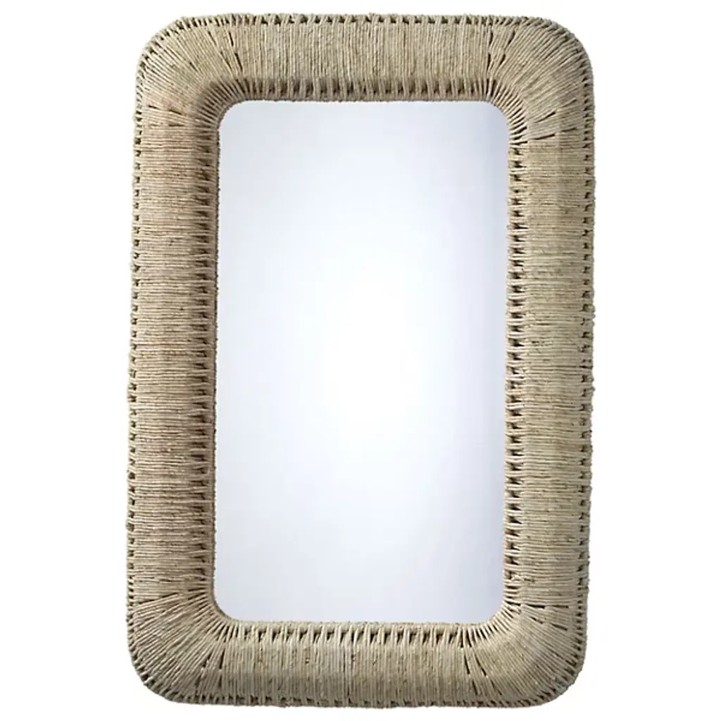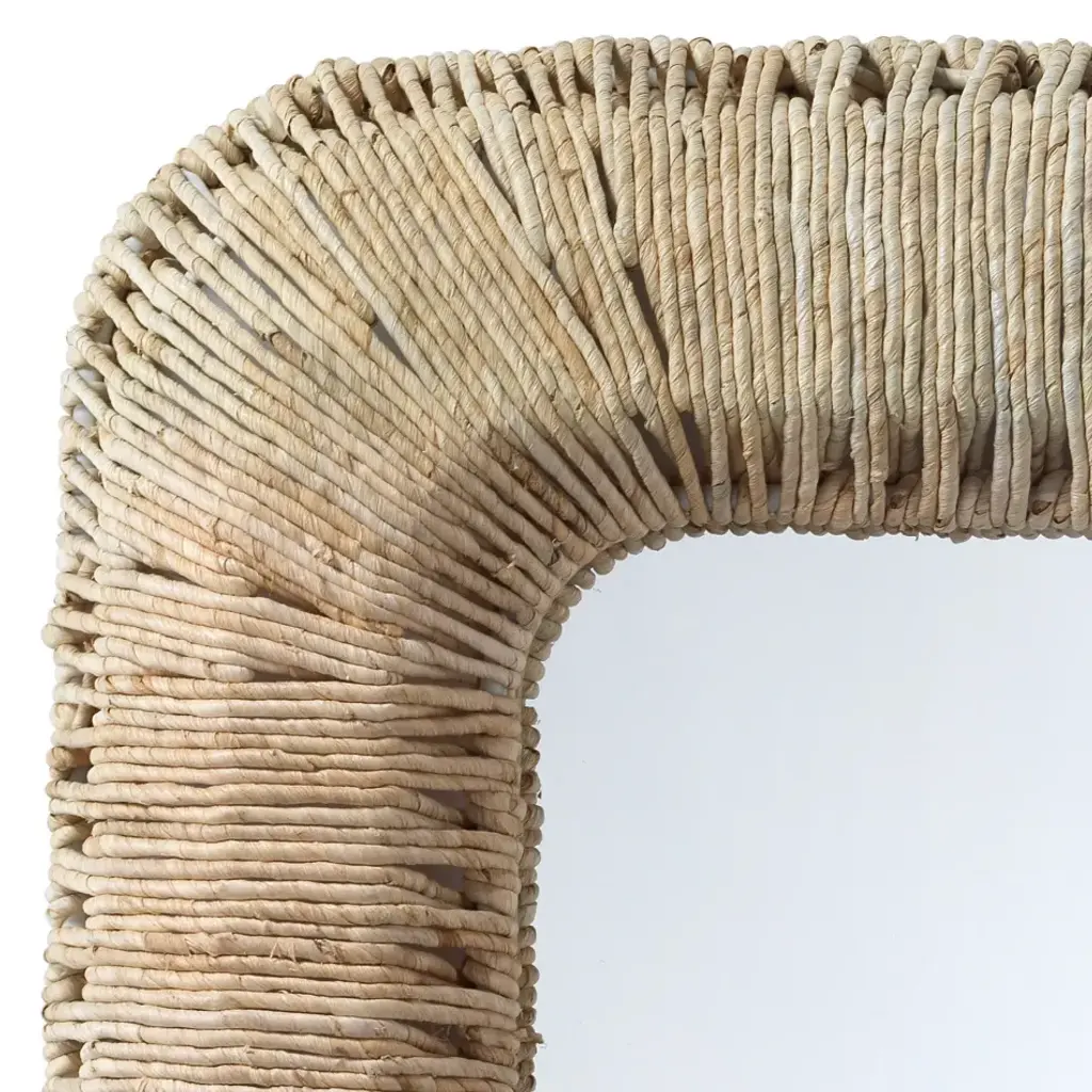 Brimming with casual, coastal style, this mirror features natural corn straw rope that is meticulously wrapped and expertly finished by hand, making each unique. Use it to add a textural twist to your walls while also reflecting light around the room.