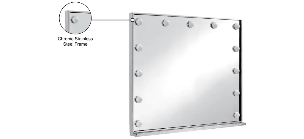 Feel like an aspiring starlet when you get ready in front of this Hollywood Chrome mirror. This beautiful mirror features a chrome stainless steel frame outfitted with lights that frame its perimeter, adding the look and feel of a VIP's dressing room to your bathroom.