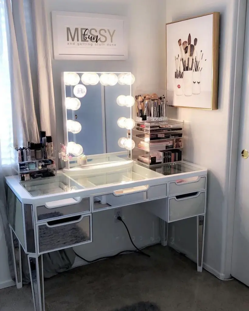 Impressions Vanity Hollywood glow vanity mirror With 10 Clear LED Bulbs. Hollywood lighted glow vanity led makeup mirror is designed from start to finish and beautifully handcrafted using high-quality materials. Every step performed by top craftsmen within our high-standard facility, our Hollywood Glow series is masterfully created with signature finishes and glazed with the perfect touch of gloss. The exclusive patented Impressions Vanity Hollywood Glow frame design is unmatched in its simple sophistication, Detachable base for easy wall mounting (wall mount kit required, sold separately), Adjustable lighting with the easy-to-reach dimmer switch, Minimal assembly required, just screw in the base and bulbs, plugin, and light up.Features:HOLLYWOOD STYLE MIRROR: This Hollywood makeup mirror features custom premium LED vanity bulbs around the mirror to create the perfect studio-quality environment and make you feel specialLIGHTED MIRROR: This Hollywood-style vanity mirror with lights has a timeless aesthetic that always flips with the easy-to-reach dimmer switch for quick and accurate lighting controlWOODEN BASE: This dressing lighted makeup mirror is beautifully handcrafted to finish using high-quality materials that lend a premium feel, weight, and quality. It can be placed on a makeup desk or simple wall mounting or anywhereCHARGING EXTENSION: This beautiful LED mirror has a side-mounted accessory power outlet for all your beauty accessories and device charging needs