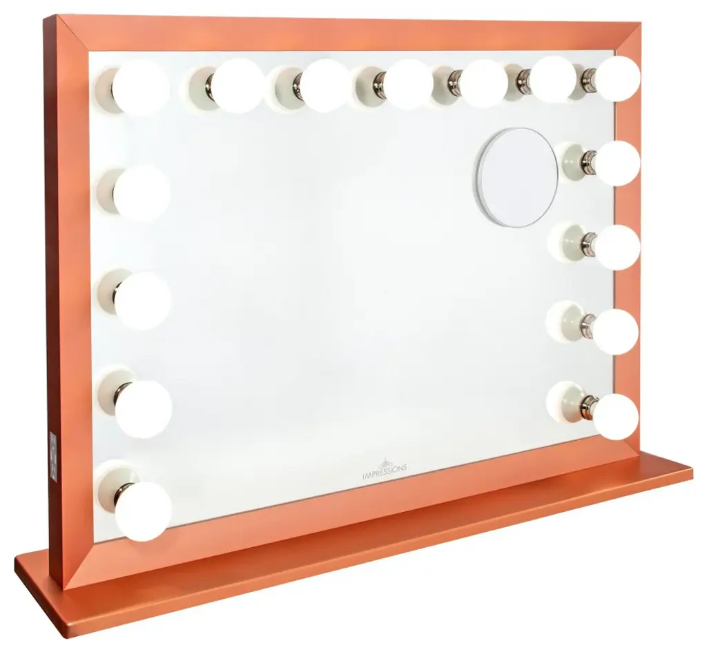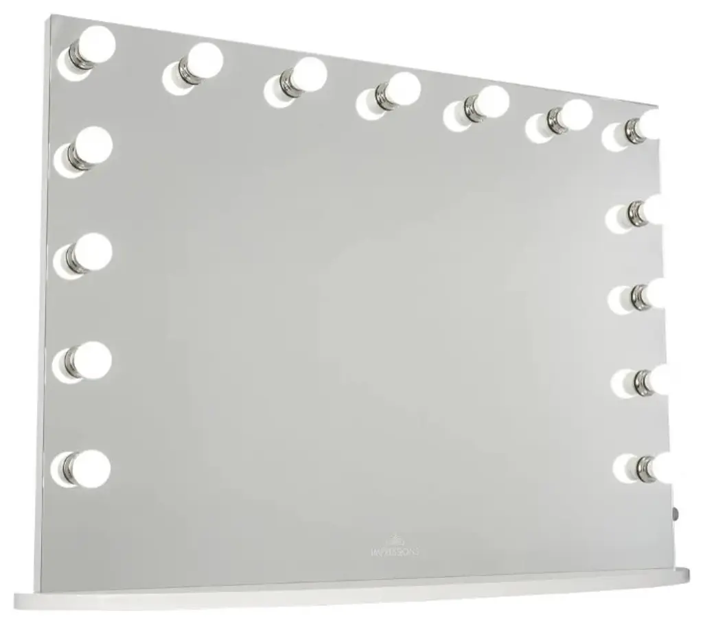 Impressions Vanity Hollywood Glow Panorama extra wide vanity mirror is designed from start to finish and beautifully handcrafted using high-quality materials. Every step performed by top craftsmen within our high-standard facility, our Hollywood Glow Series is masterfully created with signature finishes and glazed with the perfect touch of gloss. The ultimate Hollywood backstage experience and bring out your inner ultimate celebrity on the daily with the ridiculously amazing Impressions Vanity Hollywood Glow Panorama Wide Vanity Mirror.Features:HOLLYWOOD STYLE MIRROR: This Hollywood Glow makeup mirror features custom-made premium frosted LED vanity bulbs surrounding the mirror to help create the perfect studio quality environmentLIGHTED MIRROR: This wall mirror has a side switch and adjusts the brightness with an easy-to-reach dimmer switch for quick and accurate lighting controlEASY TO INSTALL: This dressing mirror has beautiful handcrafted high-quality wood finished in a mid-gloss coat that lends a premium feel and quality. It can be mounted on a wall or placed elsewhereCHARGING EXTENSION: This beautiful LED mirror is equipped with a side-mounted accessory power and USB charging outlets for all your beauty accessories and device charging needs
