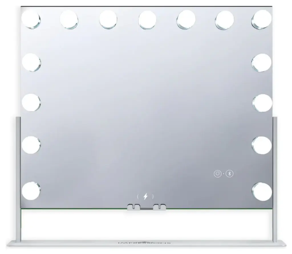 Impressions Vanity Bring your inner artist out with the Hollywood Tri Tone Artiste XL makeup mirror. Equipped with built in long lasting LED Lights around the mirror for even lighting. Tap the Power button to power it on or off. Tap the light color button to switch between cool white, natural, and warm light tones. Hold the light bulb button down to adjust brightness. Premium iron quality frame.DC plug in port.Features:MAKEUP MIRROR: Bring your inner artist with a beautiful dressing mirror. This Hollywood style mirror is perfect for you. It is surrounded by long lasting LED Lights for even lighting which creates a good lookTOUCH SENSOR SWITCH: This lighted mirror has a soft touch sensor switch to adjust the brightness to your desired level. Just tap the button to choose cool white, natural, and warm like 3 light color tonesTILT VANITY MIRROR: This vanity mirror base is made of premium quality iron. The mirror is full tilt, with this feature you can easily adjust to give your best look from any angle. So you can feel more comfortable during makeupPOWER OPTION: This smart mirror runs with a DC plug. Just tap the power button to power it up. Also, this button works mirror on or off. It''s a perfect gift for special occasions