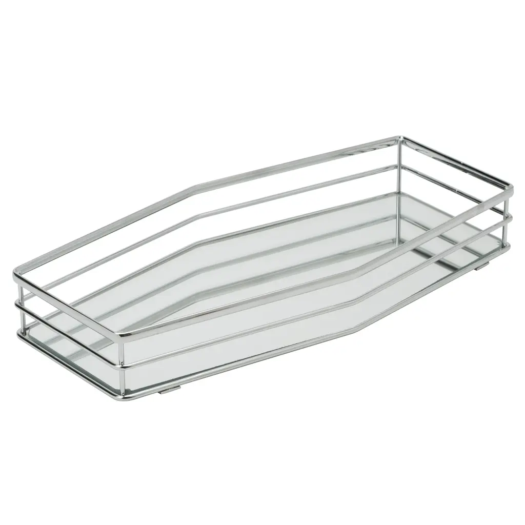 This Home Details Vanity Tray features a chrome finish and an attractive design to add the right touch of elegance. Fits easily on a bedroom dresser or bathroom countertop and is a perfect place to store your perfumes or guest toiletries. Features: Made with steel Contemporary style Chrome finish Silver color7 inches wide x 14 inches long