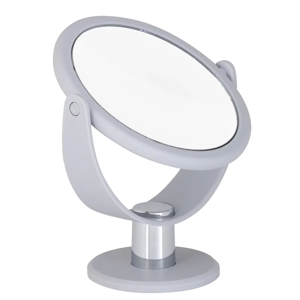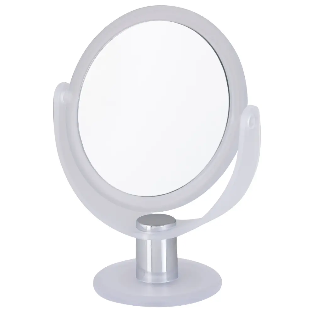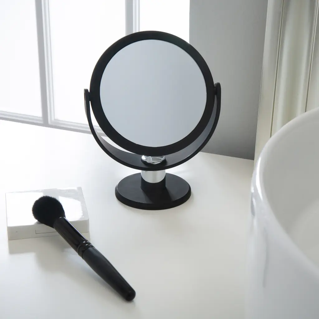 Bring style and functionality to your dresser or vanity top with this Home Details Vanity Mirror. Equipped with 2 mirrors, one side standard and second side with 10X magnification. Magnification side makes it easy to get an up close look and those hard to see places, to perfectly apply your makeup and perfect those eyebrows! The vanity mirror size is great for vanity's, dressers and office desks!
