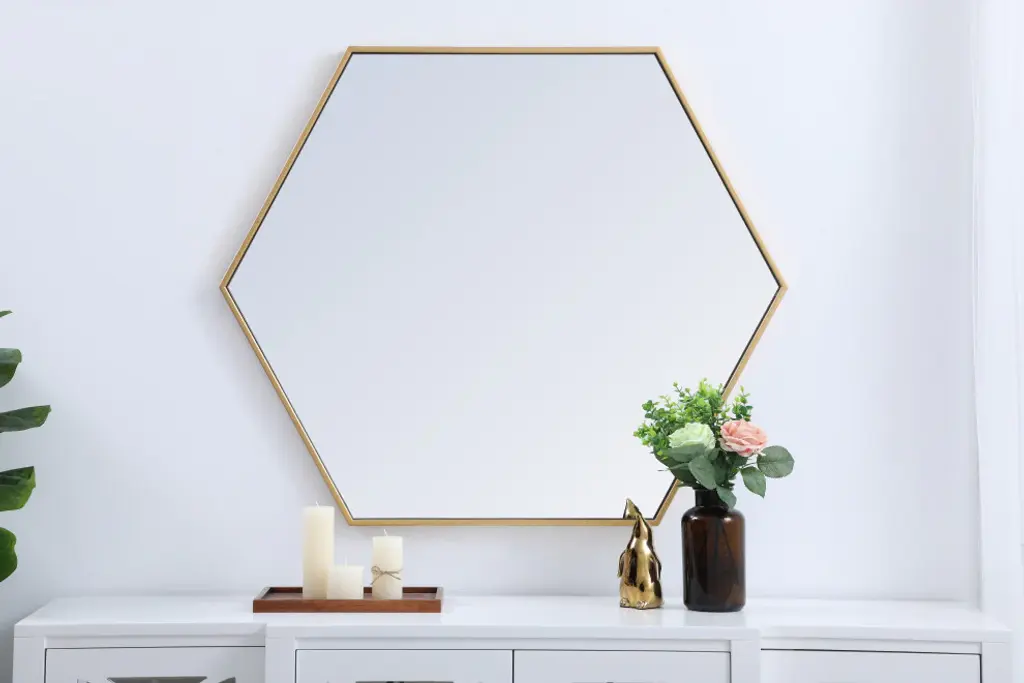 Add a bit of visual fun to your home with this playful hexagonal-shaped mirror. Its stylish personality will mingle with your decor and create a mesmerizing display of contemporary excitement. The clear mirror opens the visual space of your room, while the slender metal frame adds subtle color. Available in a black, brass or Silver finish and comes in a variety of sizes--it''s the perfect mirror for any sized home.
