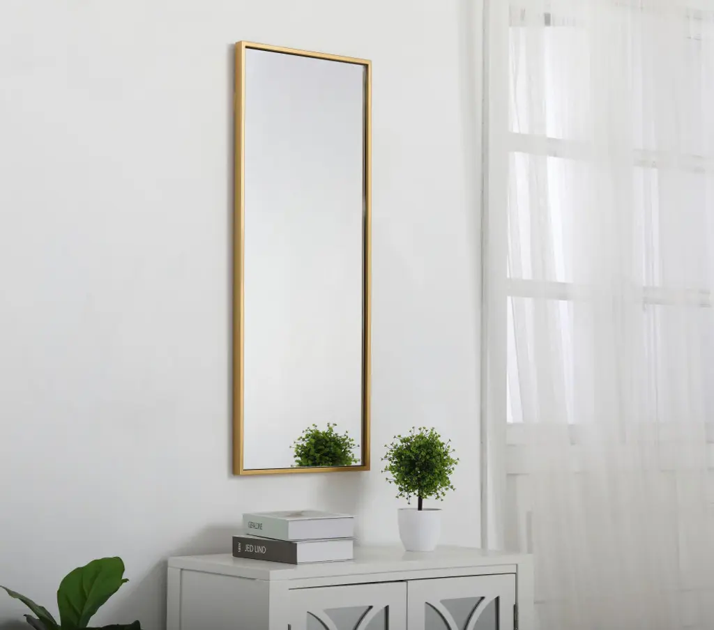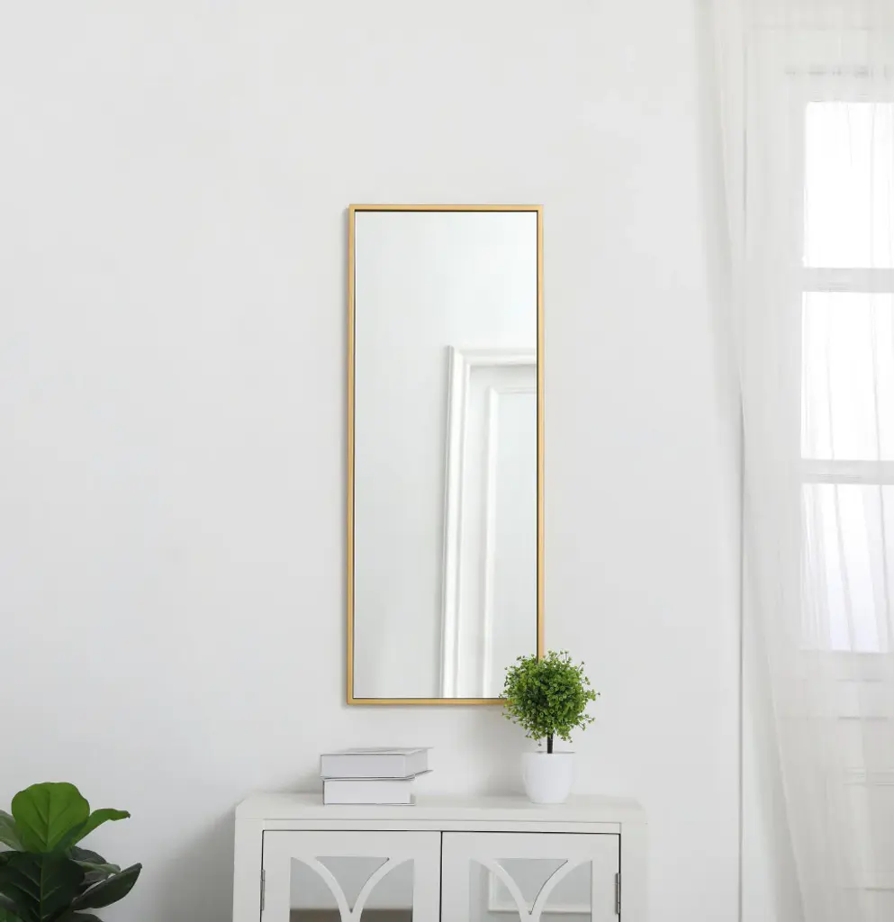 Add elegance and simple form into your home while expanding visual space. This versatile rectangular Home Living mirror can be oriented vertically or horizontally, and its slender metal frame comes in a black, brass, or Silver finish. Available in a variety of sizes, this mirror offers you a plethora of design options--whether it overlooks your home in the foyer, bathroom, or bedroom, its stylish modernity will please all.