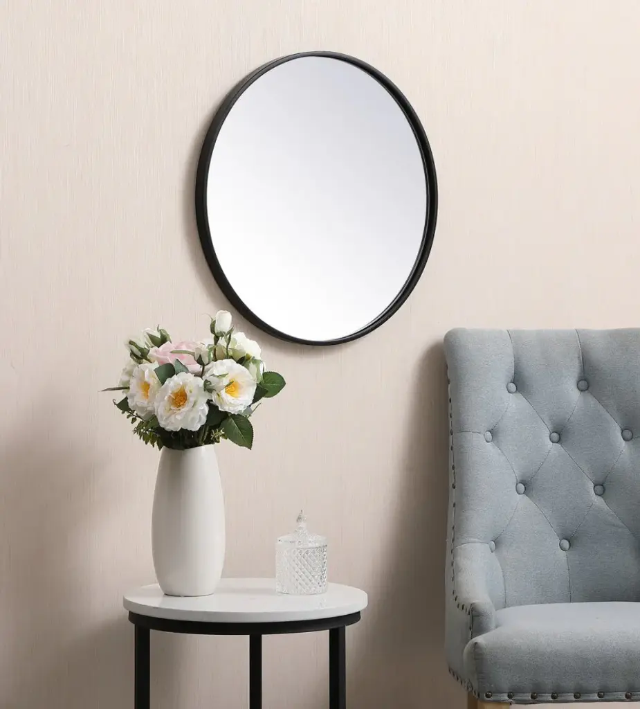 Home Living Metal Frame Round Mirror 21", Black
