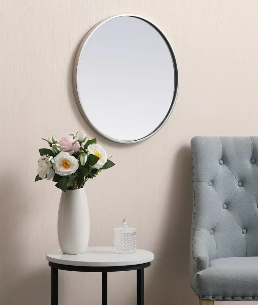 Enhance the appeal of your home or office with this Home Living contemporary mirror, slightly antiqued, featuring a thin rounded metal edges in a deep profile, reflecting a minimalist''s design and trendy styling. To ensure your home safety, we use a metal hanger ring that are securely welded to the back of the metal frame, which sit on top of the frame for easy hanging. We recommend using suitable heavy duty picture/mirror hooks, selecting the best type of fixing for the particular wall you wish to hang the mirror on, using the appropriate rawl plug if required.this mirror is an ideal size for small spacesMirror is recessed into the thin metal framethe mirror comes with a solid MDF board backing and one welded hanger for easy installationhand polished edges ensures timeless decorclear glass mirrorcrafted from metal and mdfSilver finish has distress / antique paint application