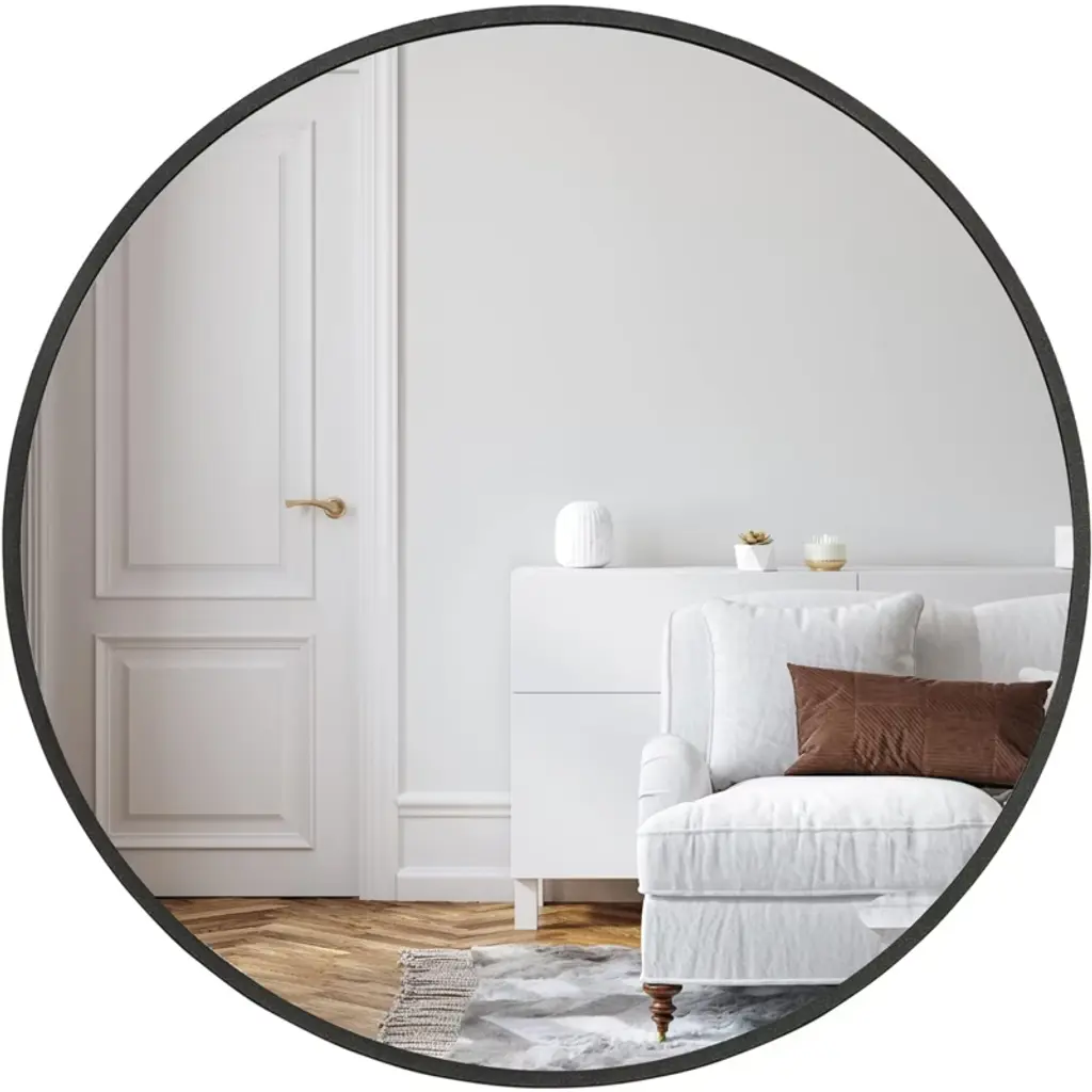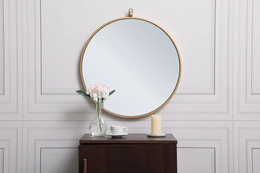 Enhance the appeal of your home or office with this Home Living contemporary mirror, slightly antiqued, featuring a thin rounded metal edges in a deep profile, reflecting a minimalist''s design and trendy styling. To ensure your home safety, we use a metal hanger ring that are securely welded to the back of the metal frame, which sit on top of the frame for easy hanging. We recommend using suitable heavy duty picture/mirror hooks, selecting the best type of fixing for the particular wall you wish to hang the mirror on, using the appropriate rawl plug if required.this mirror is an ideal size for small spacesMirror is recessed into the thin metal framethe mirror comes with a solid MDF board backing and one welded hanger for easy installationhand polished edges ensures timeless decorclear glass mirrorcrafted from metal and mdfMounts vertically and horizontally