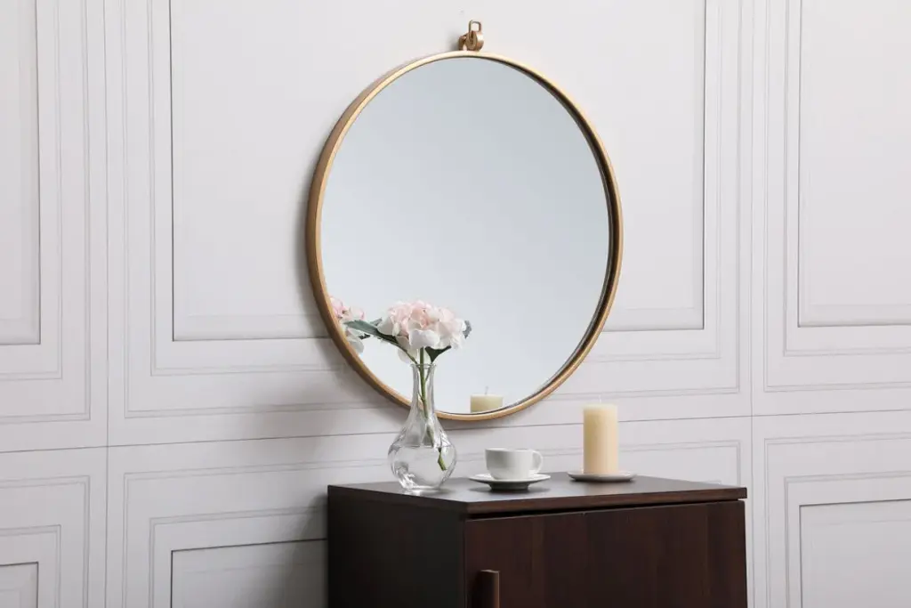 Home Living Metal Frame Round Mirror With Decorative Hook 21", Brass