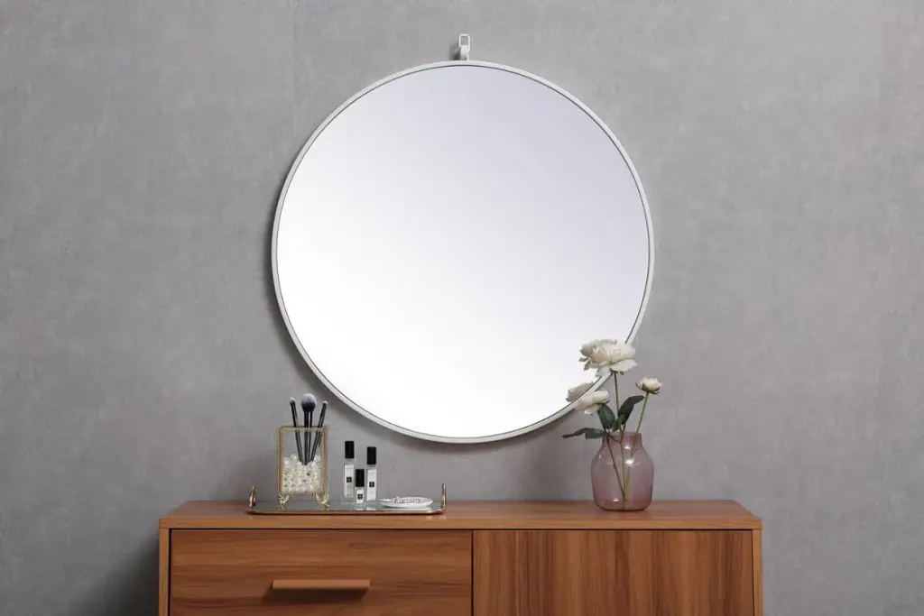 Enhance the appeal of your home or office with this Home Living contemporary mirror, slightly antiqued, featuring a thin rounded metal edges in a deep profile, reflecting a minimalist''s design and trendy styling. To ensure your home safety, we use a metal hanger ring that are securely welded to the back of the metal frame, which sit on top of the frame for easy hanging. We recommend using suitable heavy duty picture/mirror hooks, selecting the best type of fixing for the particular wall you wish to hang the mirror on, using the appropriate rawl plug if required.