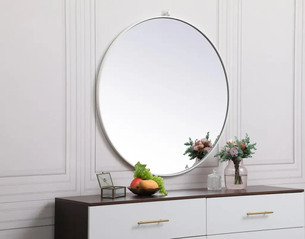 Home Living Metal Frame Round Mirror With Decorative Hook 39", White
