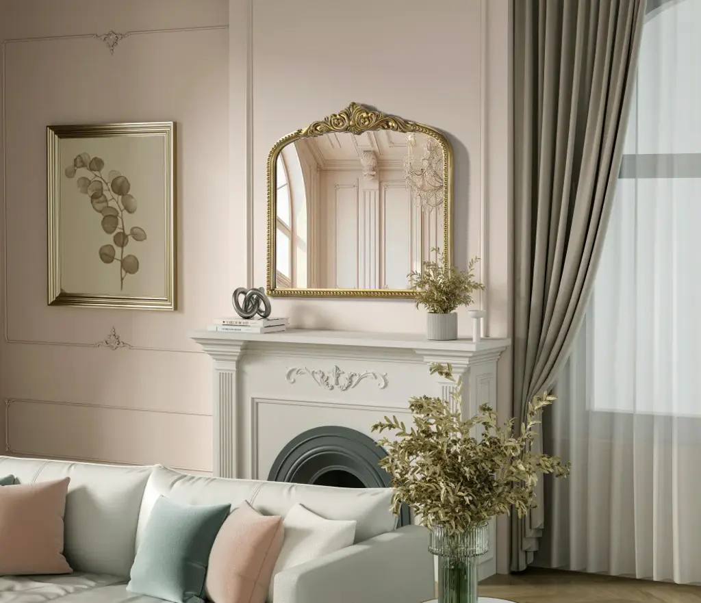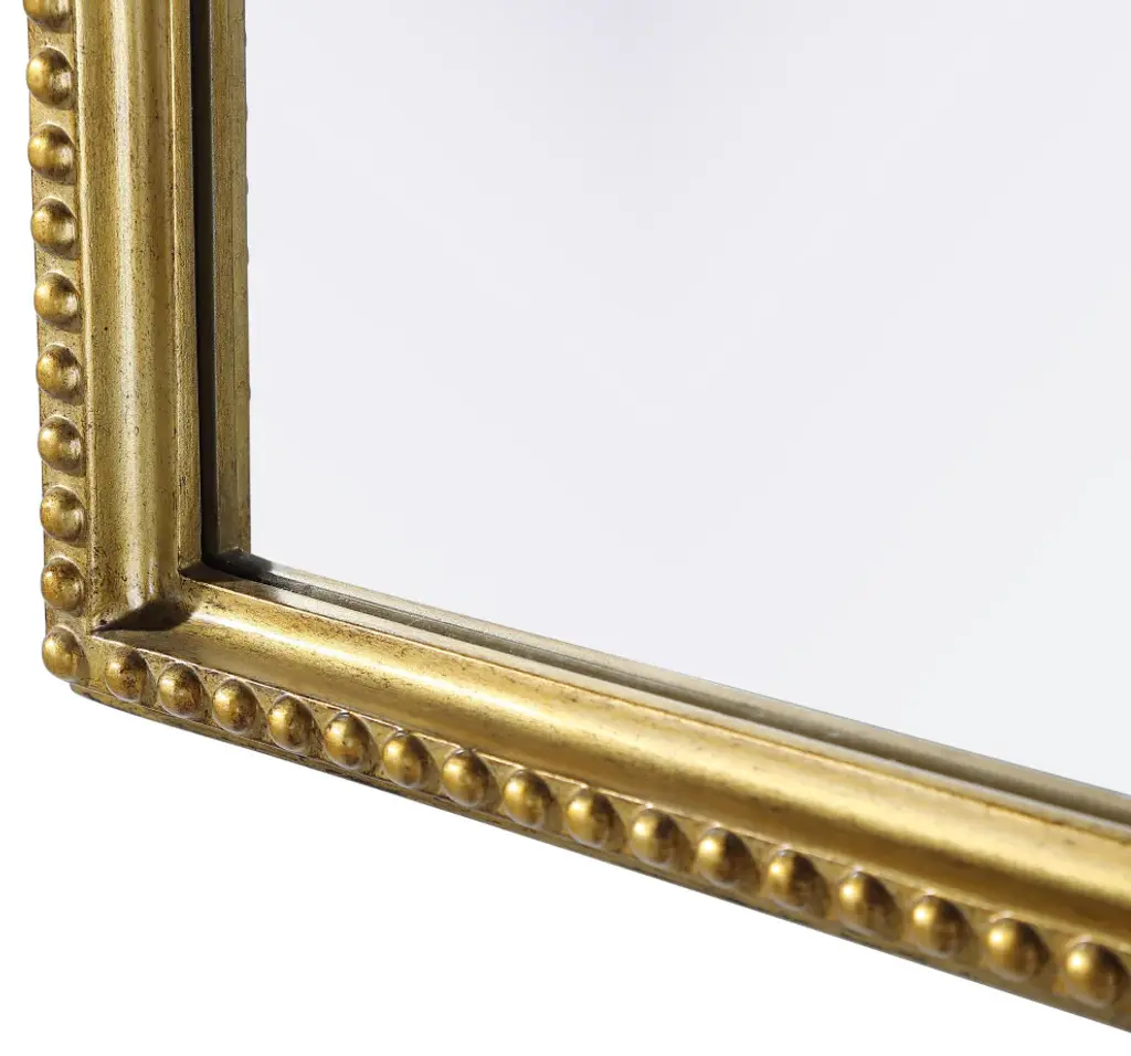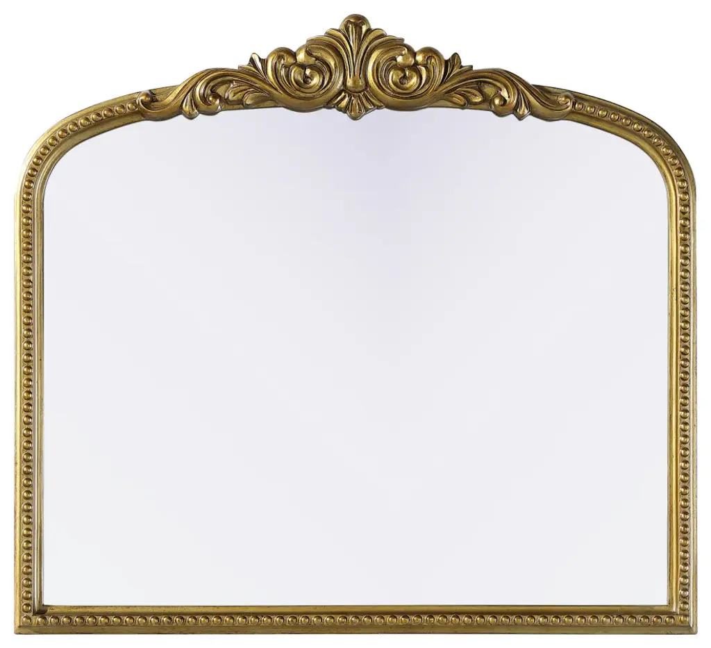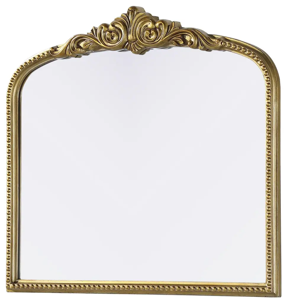 Add a touch of old-world charm to your home with this antique brass arched wall mirror, designed to bring timeless elegance and vintage character to any space. The hand-painted distressed finish gives the frame an aged, classic appeal, while the ornate crest and intricate detailing add a traditional European touch. Crafted from resin with an MDF backing board, this mirror is both lightweight and durable. Designed for vertical hanging only, it features two metal inset hangers for easy wall mounting (hardware not included). Whether placed above a fireplace mantel, in an entryway, or as an accent piece in a living room, this mirror creates a refined focal point. Available in multiple sizes and an alternative vintage bronze finish, it complements a variety of interiors, from classic and French country to vintage-inspired spaces.The mirror features a softly curved arch at the top, adding a refined and timeless touch to any space.The distressed antique brass finish is meticulously hand-painted, giving it a weathered, vintage-inspired appeal.The sculpted crest with scrolling accents at the top enhances its traditional and French-inspired design.Crafted from sturdy resin, providing moderate weight durability while maintaining a sophisticated aesthetic.Designed to be hung vertically, making it an ideal statement piece for walls.Equipped with two metal inset hanger for easy mounting (hardware not included).Comes with an MDF backing board, reinforcing the structure for long-term stability.Ideal for placement above fireplace mantels, entryways, or accent walls, bringing a touch of old-world charm to interiors.