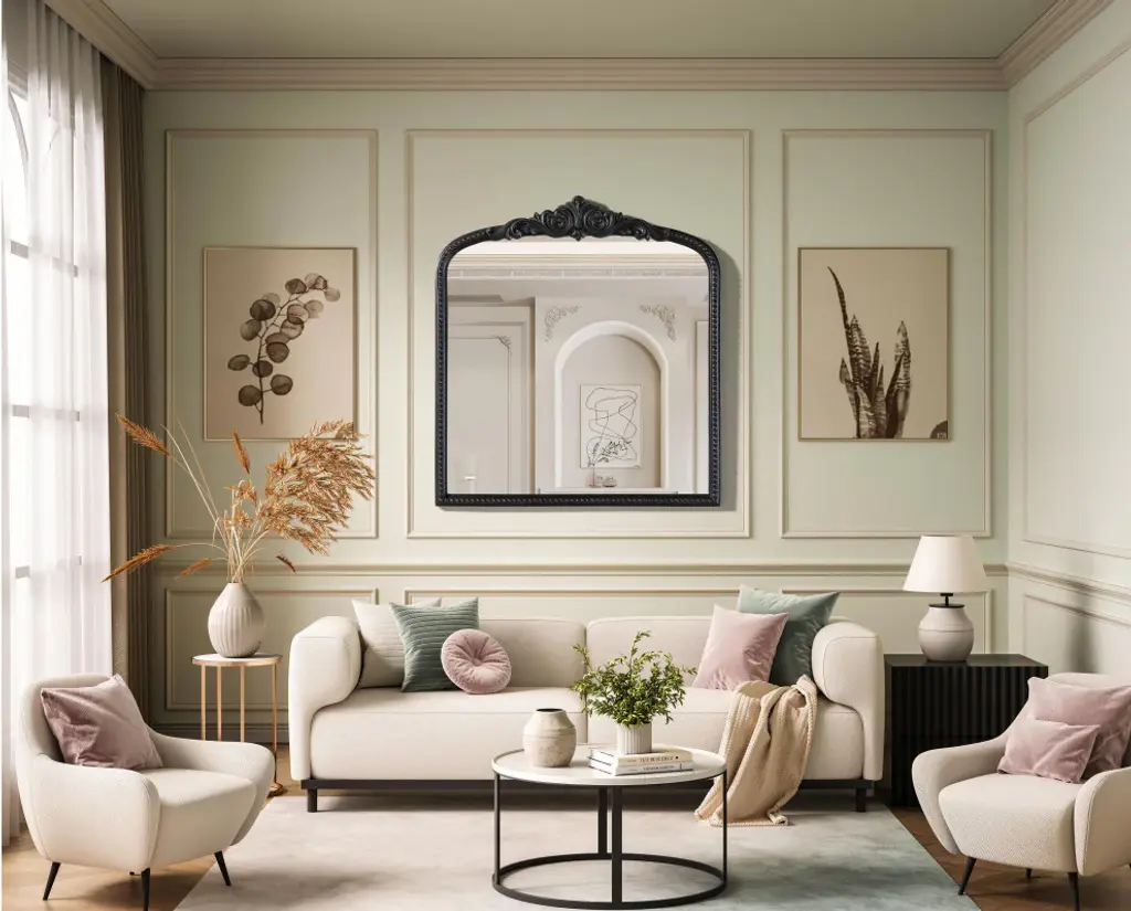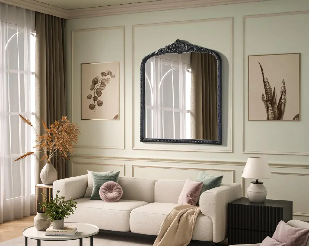 Bring classic charm and vintage character to your home with this arched wall mirror in a distressed vintage bronze finish. The hand-painted frame showcases ornate scroll and floral detailing, creating a refined, old-world aesthetic. Crafted from resin with an MDF backing board, this mirror is lightweight yet durable. Designed for vertical hanging only, it includes two metal inset hangers for easy installation (hardware not included). Whether placed above a fireplace mantel, in an entryway, or as an accent piece in a living room, this mirror enhances the space with its architectural beauty. Available in multiple sizes and an alternative antique brass finish, it is a versatile addition to classic, vintage, or French-inspired interiors.The mirror features a softly curved arch at the top, adding a refined and timeless touch to any space.The distressed vintage bronze finish is meticulously applied by hand, creating an aged, antique look with rich depth.The sculpted crest with scrolling accents at the top enhances its traditional and French-inspired design.Crafted from sturdy resin, providing moderate weight durability while maintaining a sophisticated aesthetic.Designed to be hung vertically, making it an ideal statement piece for walls.Equipped with two metal inset hanger for easy mounting (hardware not included).Comes with an MDF backing board, reinforcing the structure for long-term stability.Ideal for placement above fireplace mantels, entryways, or accent walls, bringing a touch of old-world charm to interiors.