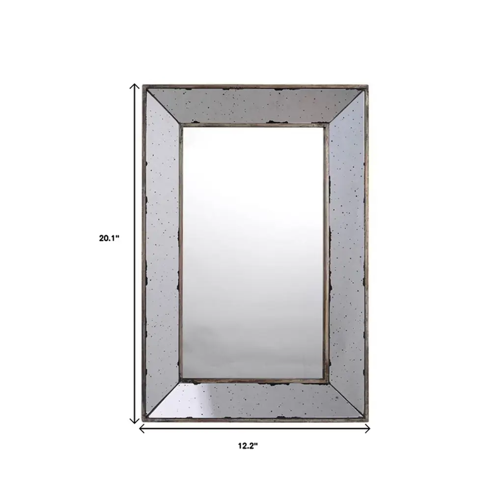 Add a touch of sunshine to any space in your home with this 20-inch silver framed antiqued accent mirror. An antiqued and distressed mirror finish gives this piece lots of vintage charm. This rectangle shaped mirror will open up any space you put in piece in. This unique mirror will look great as part of your existing wall decor or you can use it as a statement piece anywhere in your home. 20.1-inch H x 12.2-inch W x 1-inch D