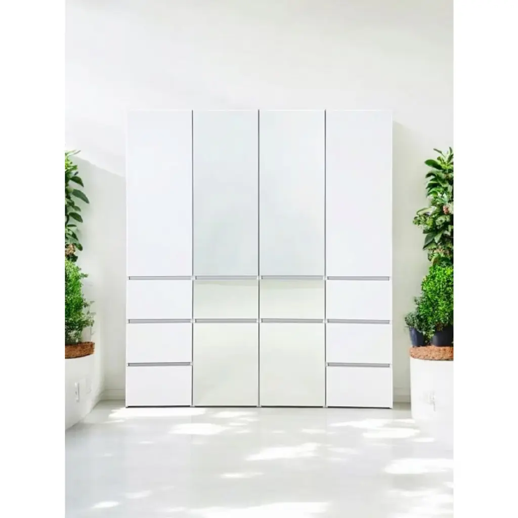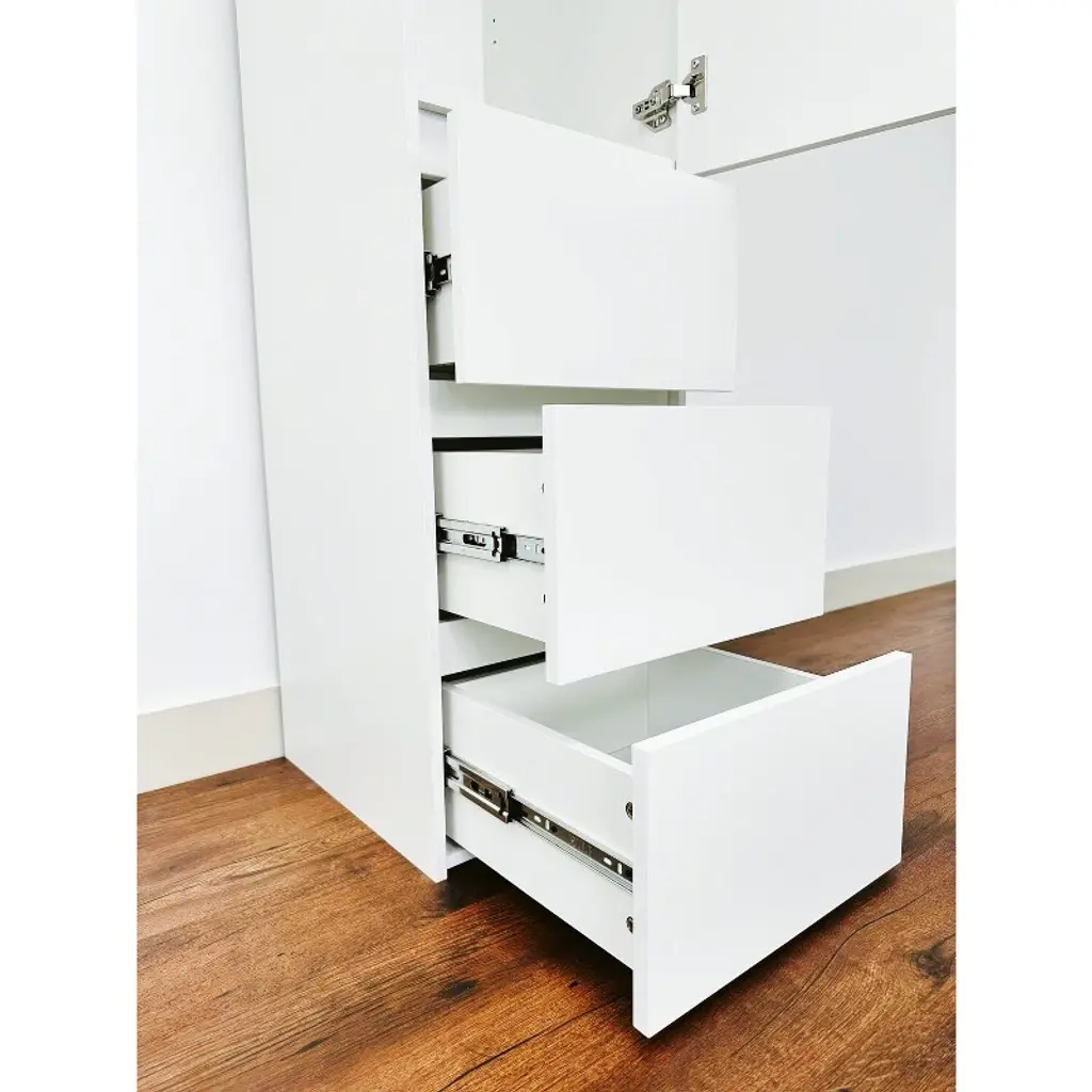 The Elise Slim Modular Closet Tower offers a sleek and functional storage solution ideal for any space. Its compact 15.7-inch width makes it perfect for utilizing leftover areas in a closet or even as a kitchen pantry. This versatile unit can be used individually or connected with others to create a customized storage system. Designed for maximum flexibility, the Elise Tower can be configured with adjustable shelves or a hanging rod. It seamlessly integrates into various rooms, from closets and bedrooms to kitchens and laundry rooms. The inclusion of mirrors and drawers provides additional customization, all achieved with just two simple SKUs. Built for durability, Elise features a water, heat, and scratch-resistant surface, ensuring long-lasting quality. Ball-bearing glides enhance sturdiness and ease of use, while fully finished edgebanding on all sides delivers a polished appearance.
