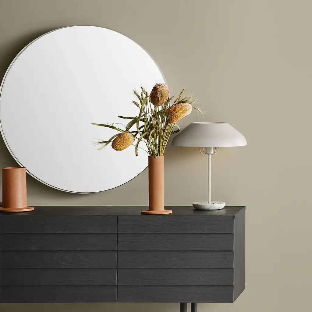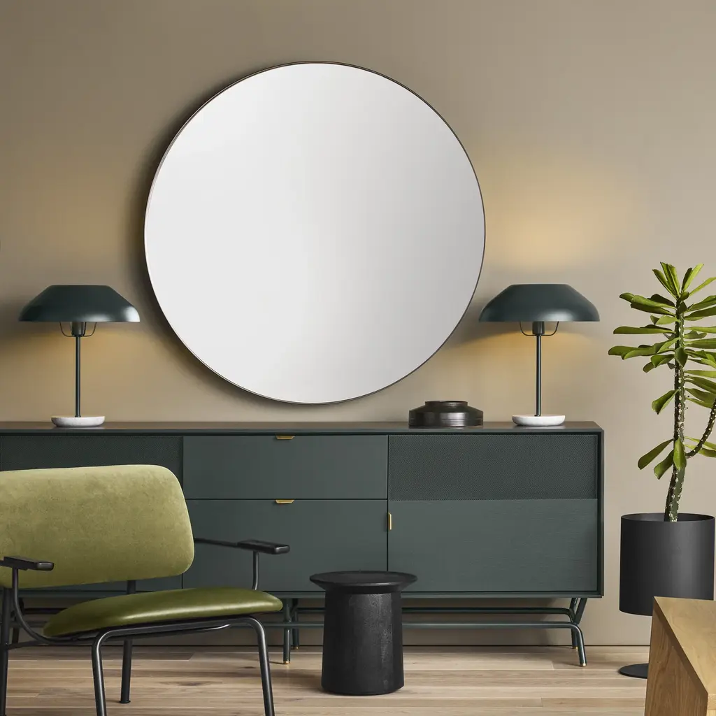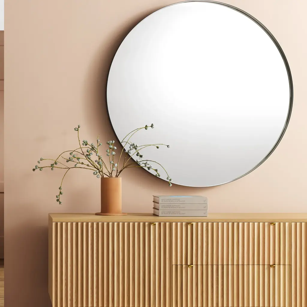 See more. A steel hoop wraps around mirror for a gorgeous understated effect. Pretty as the person looking at it. Choose from three finishes to compliment you and your space. Features