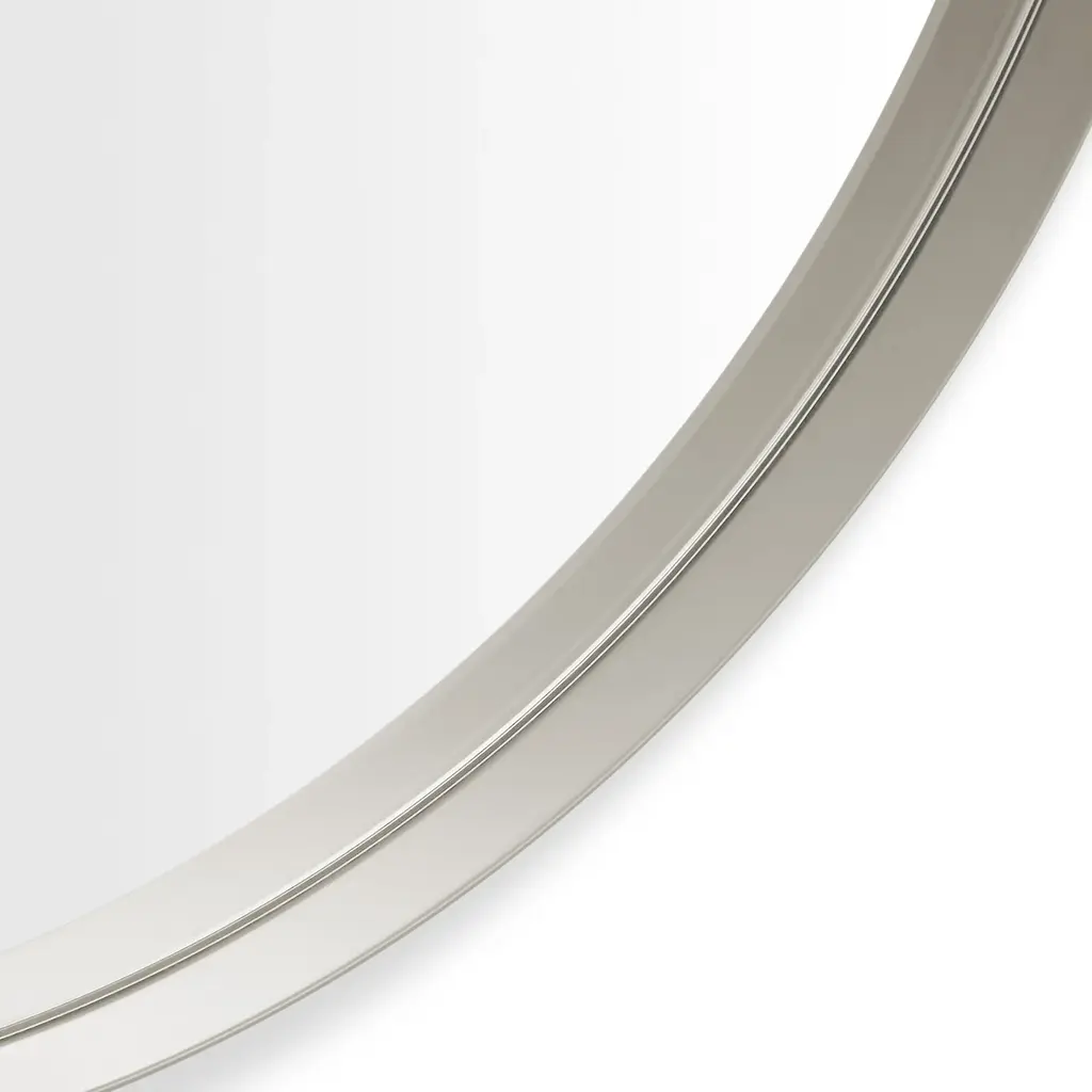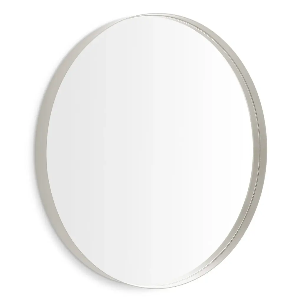 A steel hoop wraps around mirror for a gorgeous understated effect. Pretty as the person looking at it. Choose from two finishes to compliment you and your space.