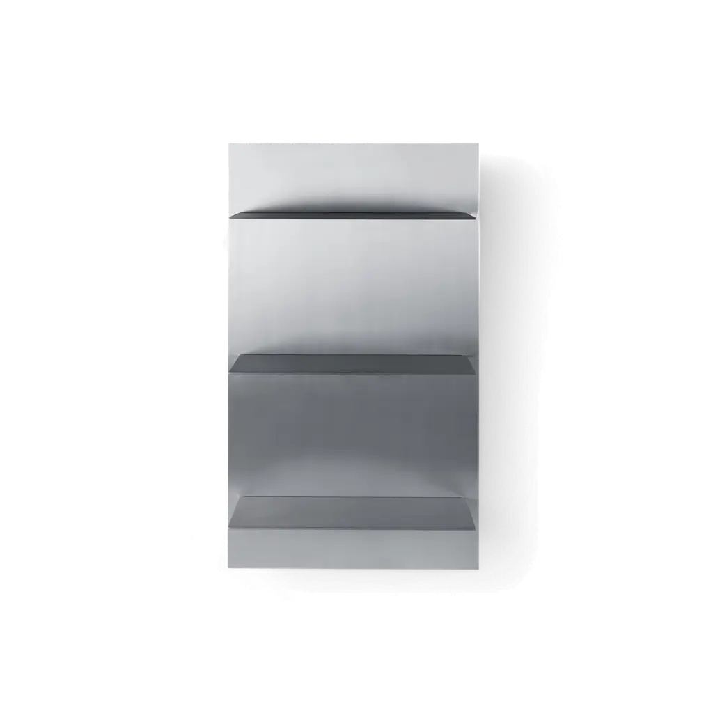 German design studio Kaschkasch—partners Florian Kallus and Sebastian Schneider—focuses on precise geometry and thoughtful details as seen in this artful collection of wall mirrors. In varying shapes, Horizon has an integrated steel shelf to serve as a handy stash spot that also lends a crisp visual accent. Available in 3 round or rectangular versions, with the mirror’s powder-coated shelf in a selection of appealing hues.