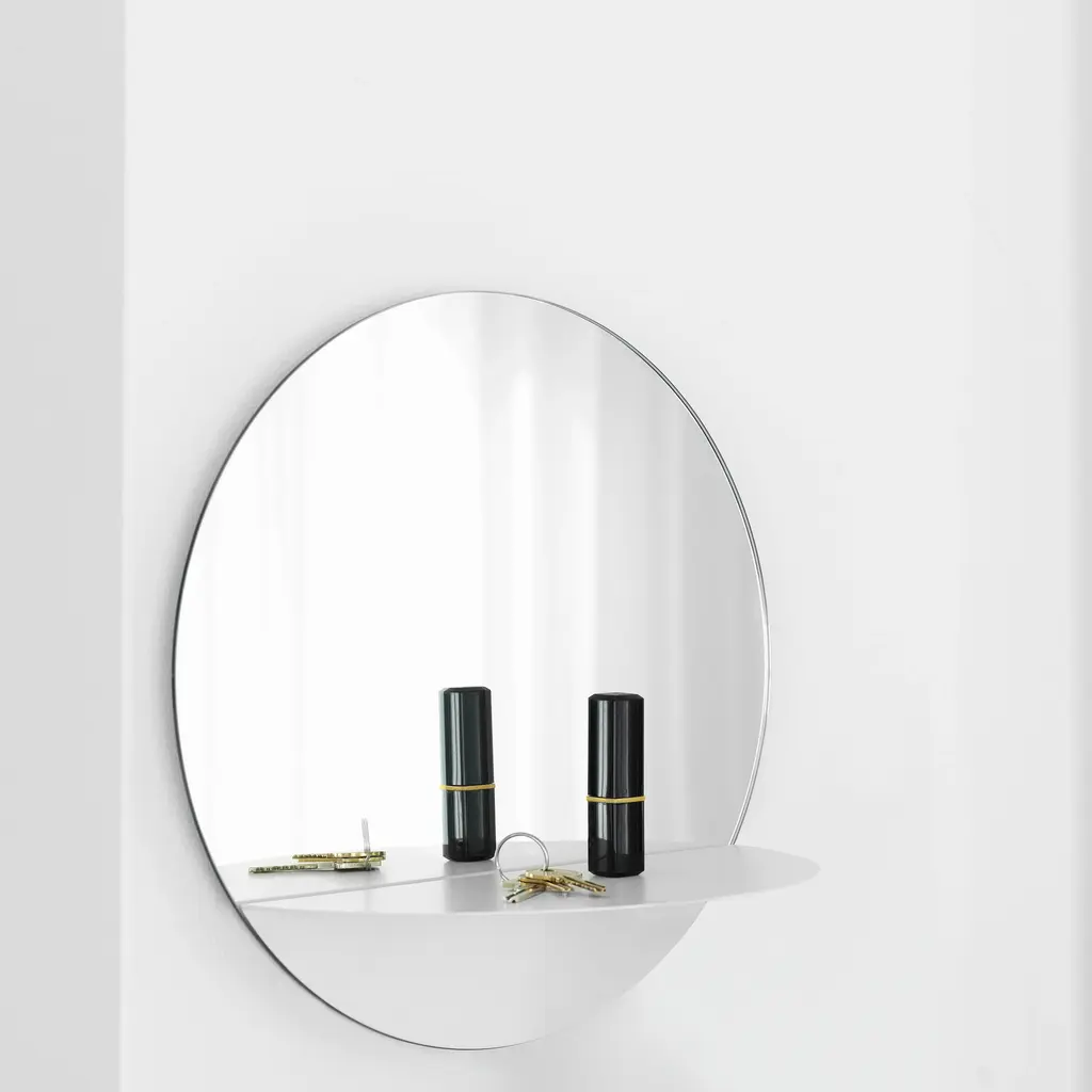German design studio Kaschkasch—partners Florian Kallus and Sebastian Schneider—focuses on precise geometry and thoughtful details as seen in this artful collection of wall mirrors. In varying shapes, Horizon has an integrated steel shelf to serve as a handy stash spot that also lends a crisp visual accent. Available in 3 round or rectangular versions, with the mirror’s powder-coated shelf in a selection of appealing hues.