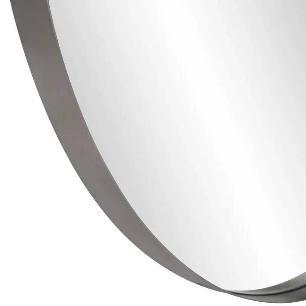 With the idea that "less is more", our Steele Mirror features a simple round mirror trimmed in a flat, shadow box styled stainless steel frame in a brushed silver. "D" Rings are affixed to the back of the mirror making it ready to hang right out of the box. Additional colors & sizes also available.