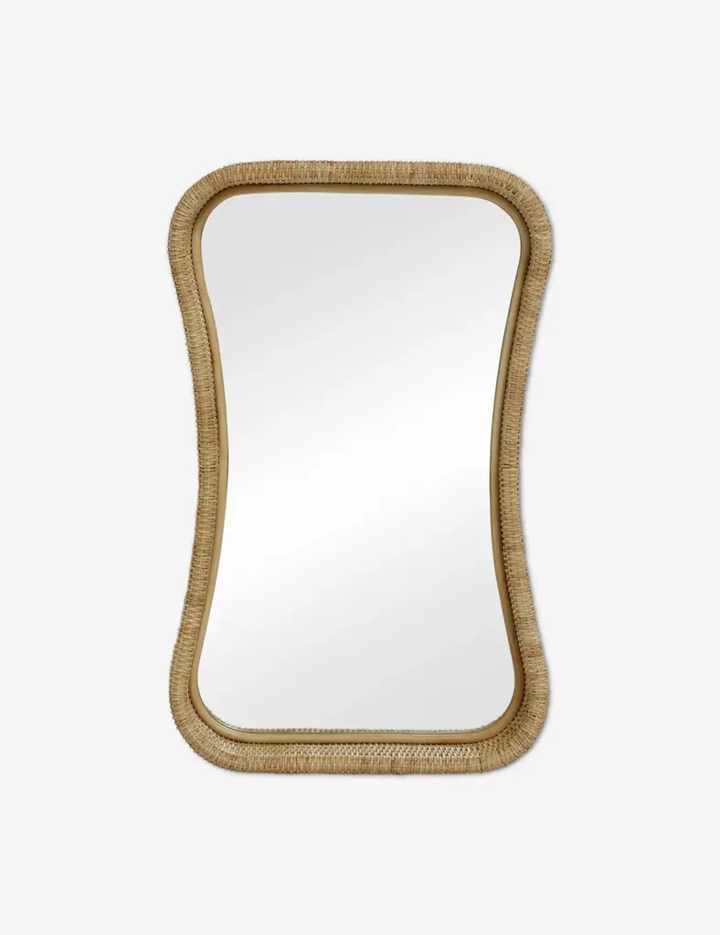 Wicker meets modern in this stylish wall mirror. The flowing lines and light finish offer a soft presence in the room set for versatile style appeal. This mirror provides a brightly elevating addition to a collected space thoughtfully refined with natural textures and chic decor.