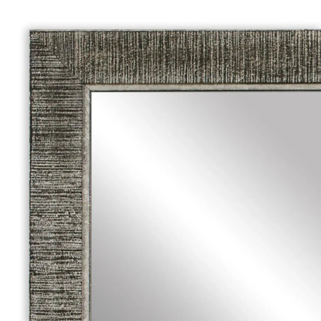 The Huntington framed mirror would look right at home in a beach house or a farmhouse. The rustic finish features scored lines that run perpendicular to the frame edge to take this custom design from simple to spectacular.Hangrail for installation will be applied on the width of the frame. All assembly hardware and instructions will be included. Additional hangrails are included if the opposite orientation is desired for installation. The dimensions displayed are the final outside dimensions of the frame, including the mirror. CATII safety backing applied on all mirrors. Approved for high-moisture areas such as bathrooms.