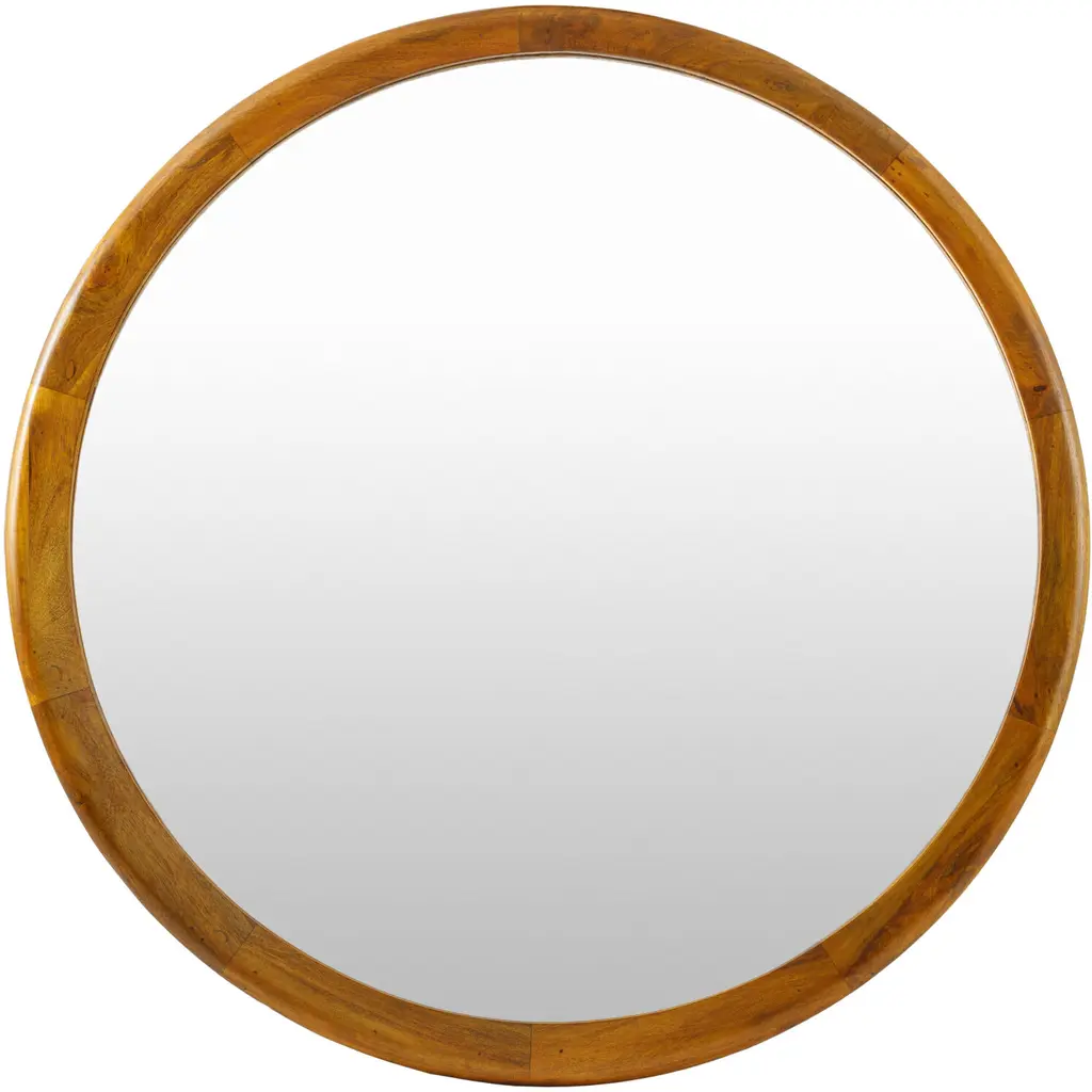 Hutton Round Decorative Wood Framed Wall Mirror, Natural, 22 Diameter