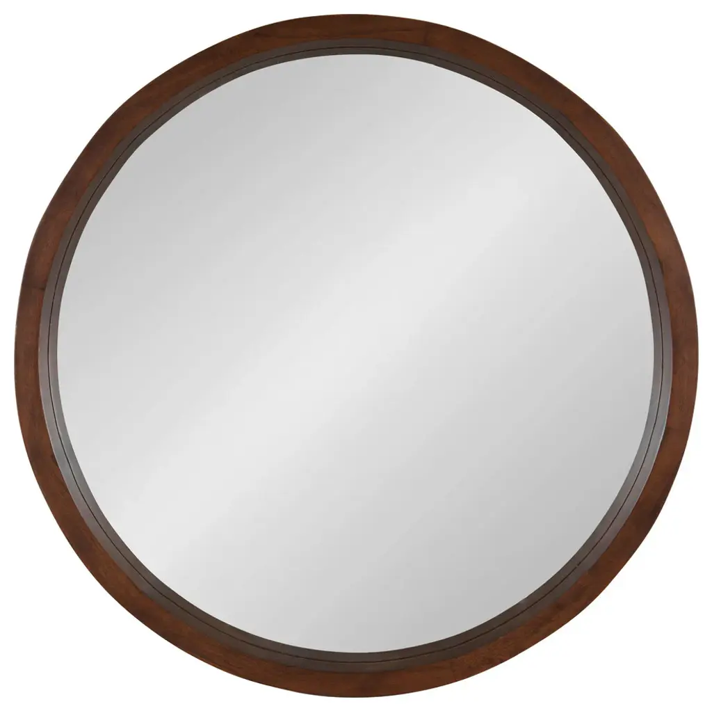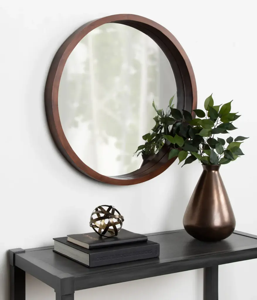 Hutton Round Decorative Wood Framed Wall Mirror, Walnut Brown, 22 Diameter