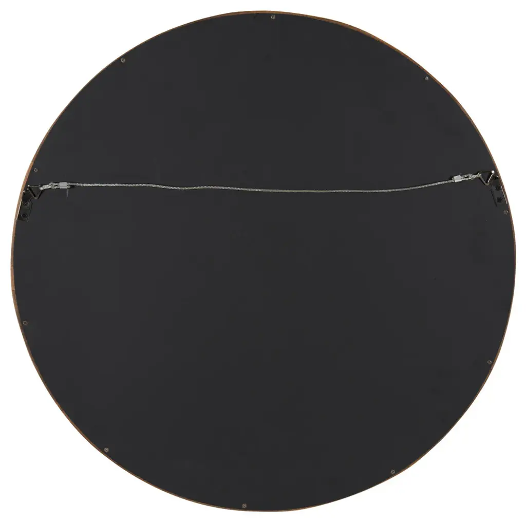 Mirrors are a great way to open up space and bring lightness to any room, but beyond that, they are a fantastic way to add style and finesse as well. Not only can they be used as a much-needed accessory and fun to decorate with, but with a bit of imagination, they can become a real focal point of your home. With the round shape of this mirror, function never looked so fashionable. The gorgeous wood frame has a smooth, sturdy appearance creating a modern take on an art deco design. Used on its own or in combination with your other home decor items, this round mirror is sure to fit in with your best look, creating an eye-catching display of pure inspiration. The shape will be a great way to break up the straight lines of a gallery display or just the right size for a smaller wall space. Hang directly above a sink, making it just perfect as a simple vanity. The outside frame of the mirror is 2.0 inches deep. Two hangers come installed on the back and are elbow d-ring type with a wire in between them, which will keep the mirror flat and secure.