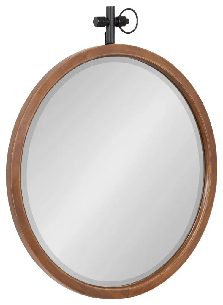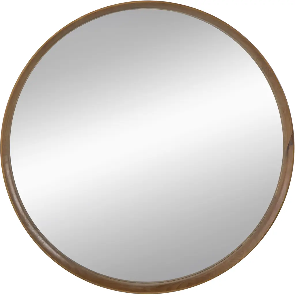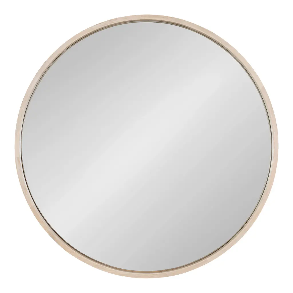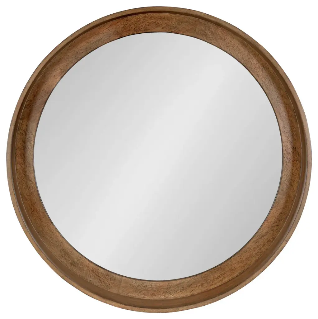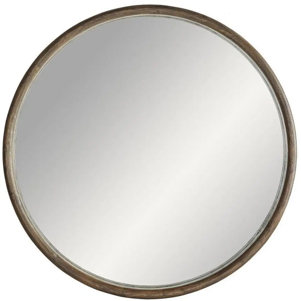 Mirrors are a great way to open up space and bring lightness to any room, but beyond that, they are a fantastic way to add style and finesse as well. Not only can they be used as a much-needed accessory and fun to decorate with, but with a bit of imagination, they can become a real focal point of your home. With the round shape of the Kate and Laurel - Hutton Mirror, function never looked so fashionable. The gorgeous wood frame has a smooth, sturdy appearance creating a modern take on an art deco design. Used on its own or in combination with your other home decor items, the Hutton mirror is sure to fit in with your best look, creating an eye-catching display of pure inspiration. The shape will be a great way to break up the straight lines of a gallery display or just the right size for a smaller wall space. Hang directly above a sink, making it just perfect as a simple vanity. The outside diameter of this round mirror is 30 inches x 2.0 inches deep. The actual mirror is 28.5 inches in diameter. Two hangers come installed on the back and are elbow D-Ring type with a wire in between them, which will keep the mirror flat and secure. • LARGE ACCENT PIECE: With an outside frame diameter of 30 inches, the sleek round shape and size of the Kate and Laurel - Hutton Mirror is a beautiful addition to an understated room with an abundance of style and charm. Within the frame, the mirror is 28.5 inches in diameter and the wooden frame is 2 inches deep with a .75 inch profile • MODERN DECOR: An artistic display on its own, this mirror will be a striking part of any home decorating scheme. The modern shape and the deep inset of the glass surrounded by the rich finish of the frame gives off even more light and depth • EASY TO HANG: Two hangers come installed on the back and are elbow D-Ring type with a wire in between them, which will keep the mirror flat and secure against a wall • SHABBY CHIC STYLE: The art deco style of this modern design gives this mirror a gorgeous chic feel - a look that goes with and complements most home decor • OPENS UP YOUR SPACE: An attractively framed mirror is the affordable way to decorate your wall while bringing light and space into a room