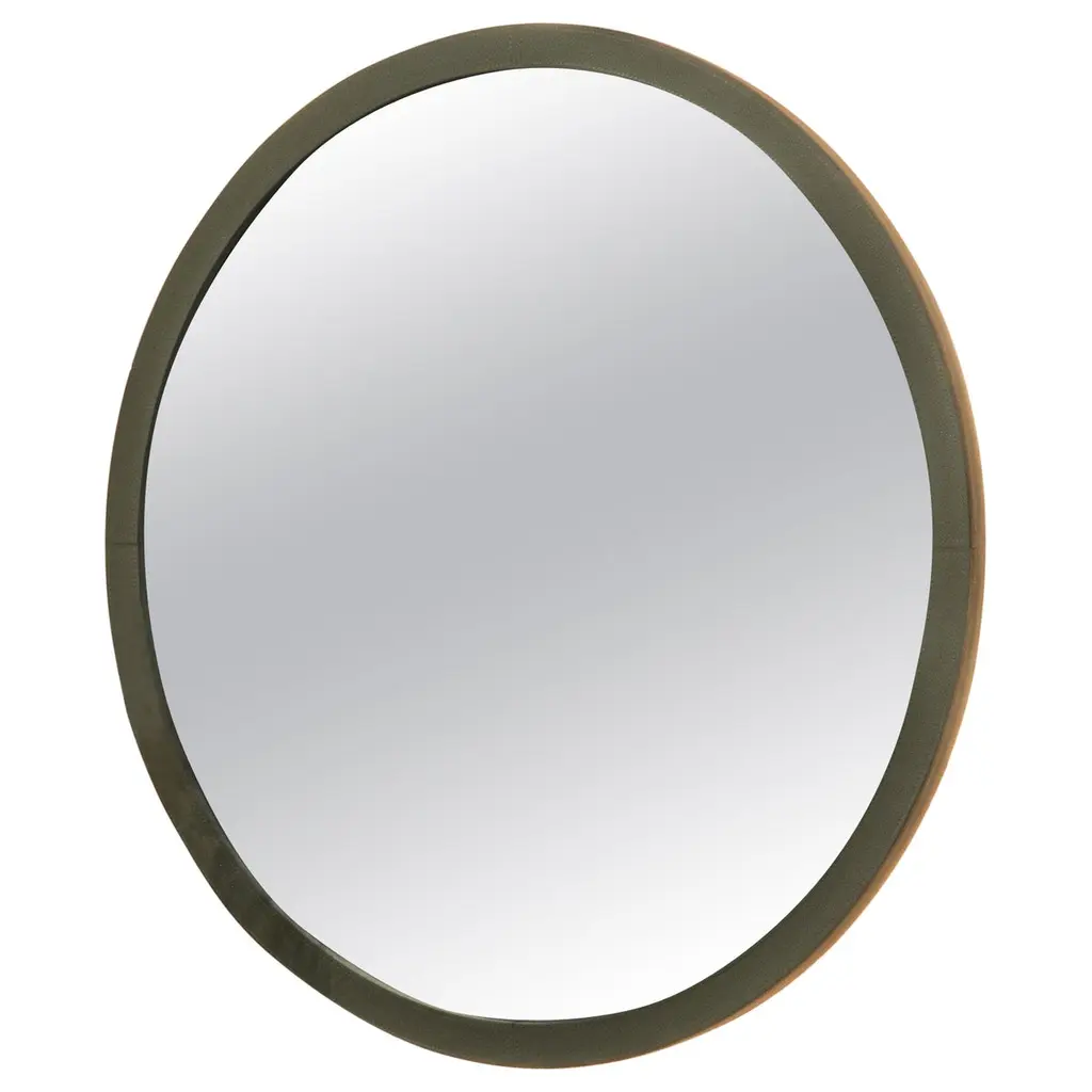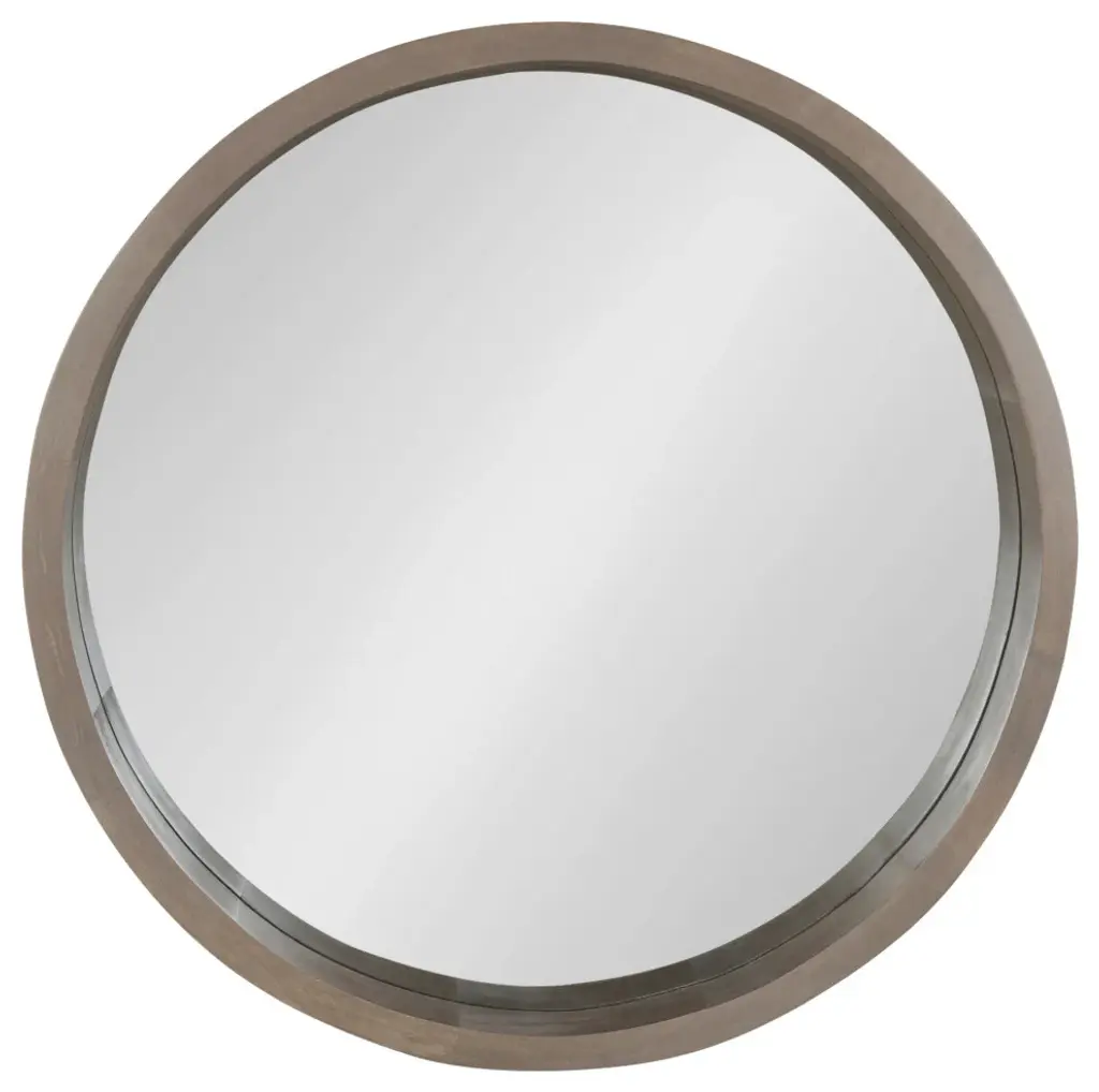 Hutton Round Wood Wall Mirror, Gray 30 Diameter
