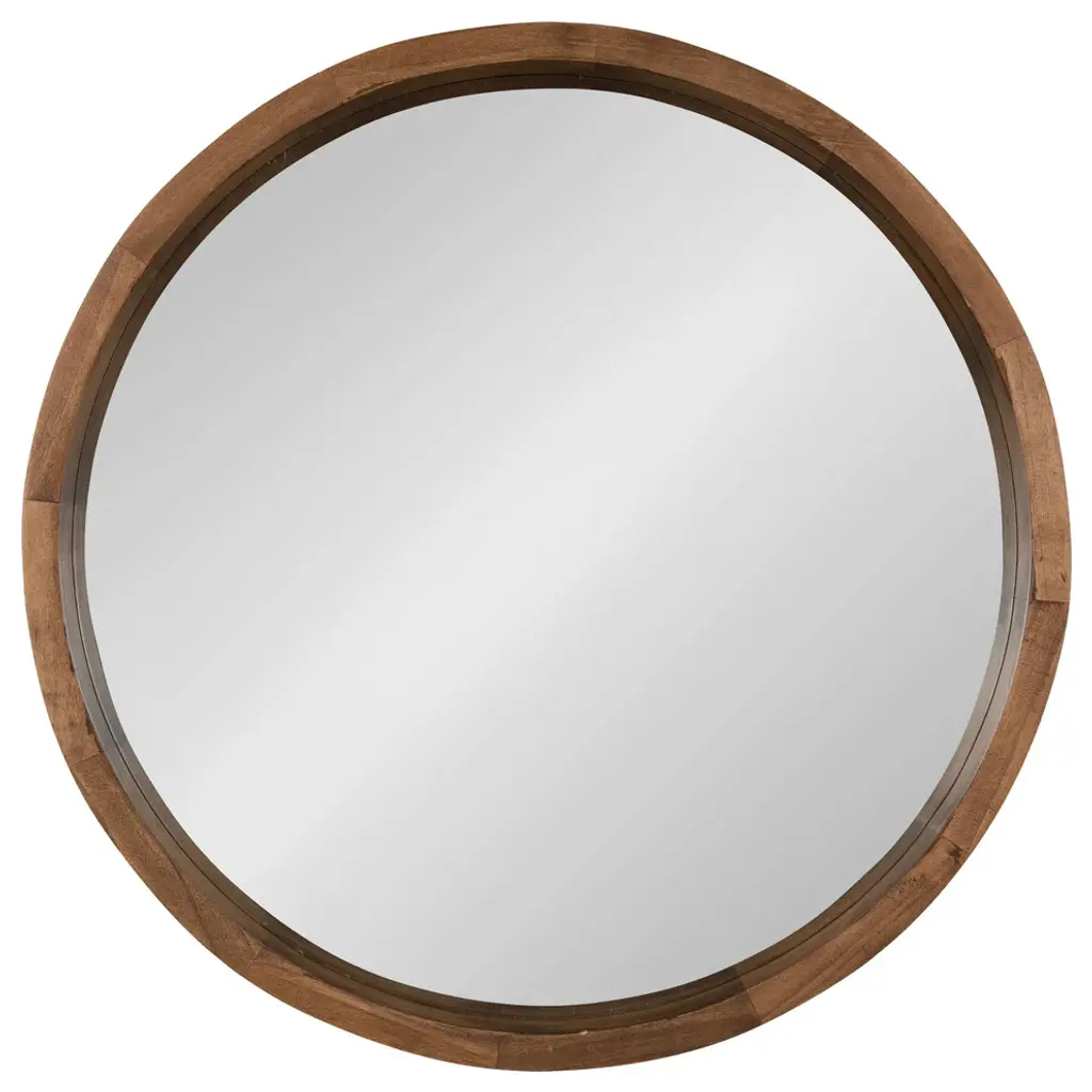 Hutton Round Wood Wall Mirror, Rustic Brown 22" Diameter