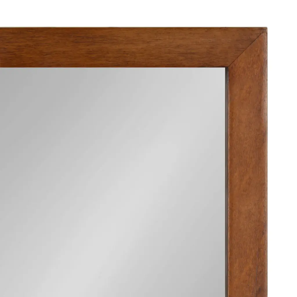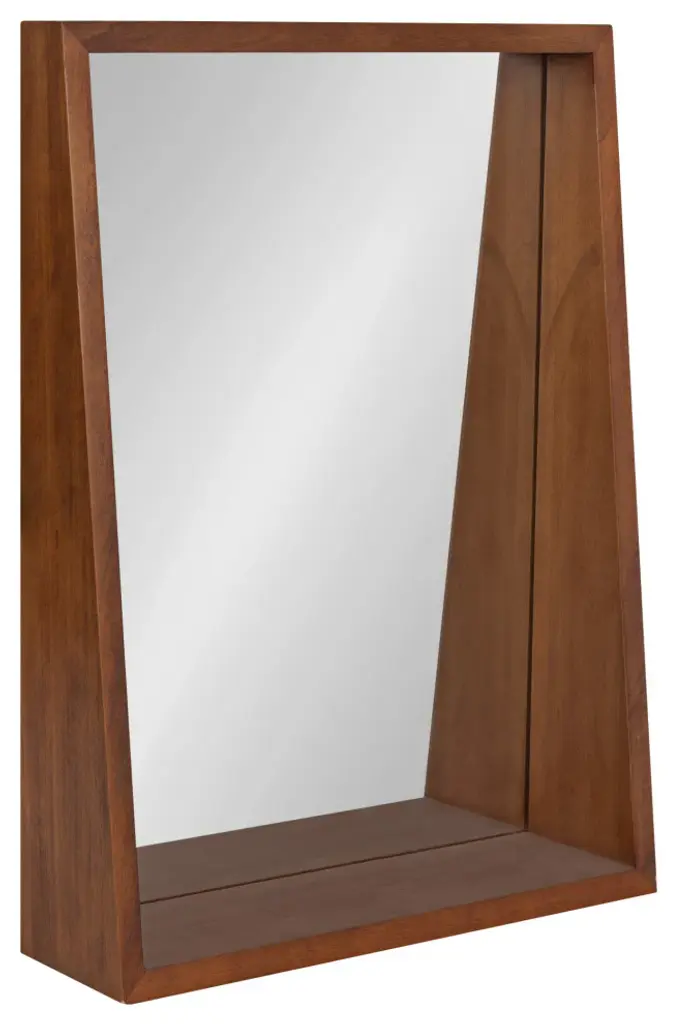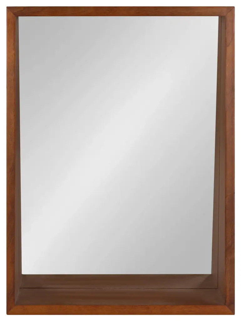 The Hutton wall mirror is a lovely, robust accent piece that is ready to impress and delight. This rectangular mirror is both decorative and functional, with a 5-inch depth to add a lovely shelf for storage and display. The Hutton wall mirror has a sturdy, solid wood frame with a warm walnut finish to give a mid-century modern vibe to any room of your home. The overall dimensions of this sophisticated wall mirror are 18 inches wide by 5 inches deep by 24 inches tall, making it an excellent and eye-catching focal point in your living room, bedroom, entryway, office, dining room, or kitchen. The large display size make it an excellent bathroom mirror over a single or double vanity as well. You could use the included shelf as a place for soap, lotion, bathroom necessities, and more. If you decide to show off this mirror in any other room of the home, that shelf would be perfect for small photos or succulents. Wherever you decide to hang it, the Hutton wall mirror is easy to install with metal D-ring hangers attached to the back of the frame. • MID-CENTURY AESTHETIC: The Hutton mirror features a cozy and warm walnut finish for a chic mid-century look• QUALITY MATERIALS: This sophisticated, practical wall mirror has a solid wood frame, a wooden back, and a large and lovely reflective glass surface for a resilient accent that will last for generations• LARGE SIZE: The overall dimensions of this mirror are 18 inches wide by 5 inches deep by 24 inches tall, giving your space a robust accent piece for any wall• FUNCTIONAL DECOR: The benefit of this edition of the Hutton wall mirror is its shelf, providing you with a practical space for small succulents, photos, and other decorative items• EASY TO HANG: Hang this lovely mirror in a matter of seconds with the convenient metal D-ring hangers securely attached to the back of the frame