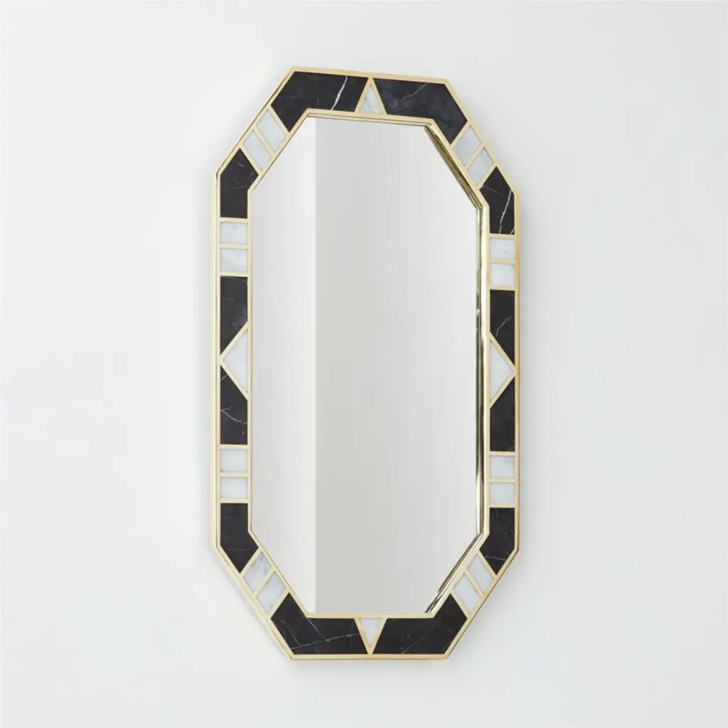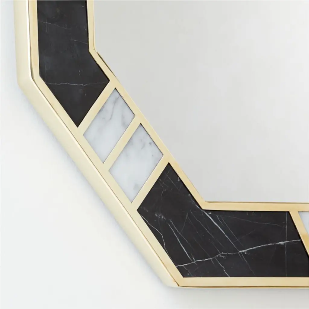 Icaro Black And White Marble Hexagon Wall Mirror 36"x20"