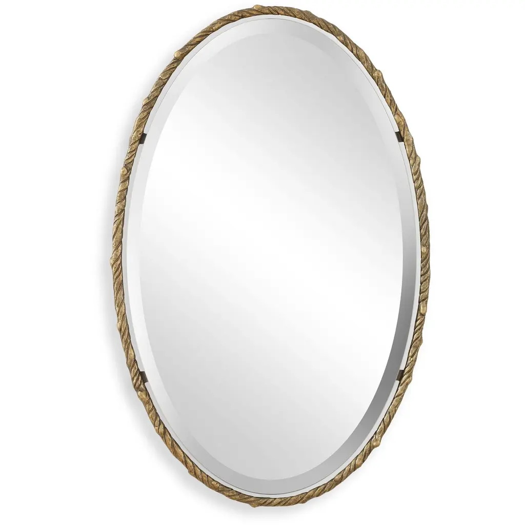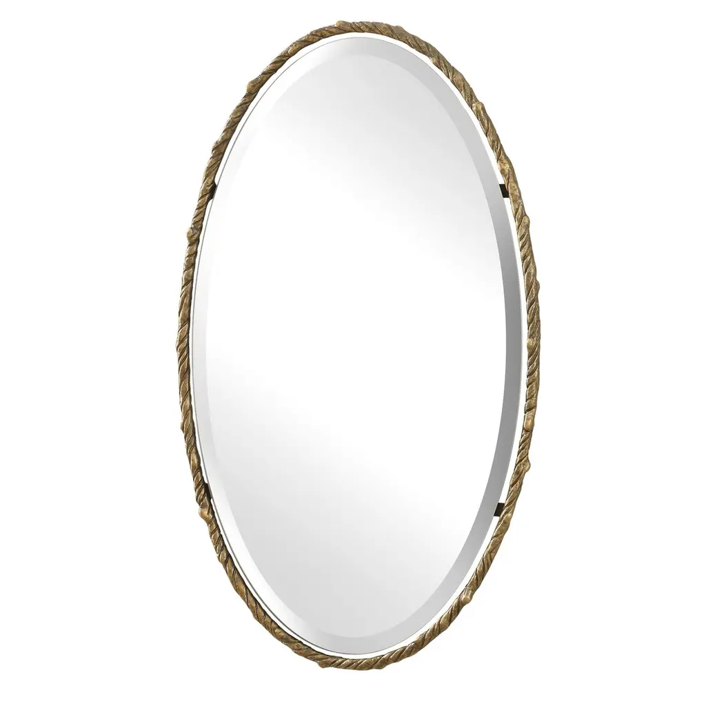 Embrace the enchanting allure of nature with this exquisite mirror, where artistry meets organic elegance. The frame, reminiscent of delicate branches, is crafted from cast iron and exudes a timeless charm with its antiqued finish. This captivating design encircles a floating polished edge bevel mirror, creating a harmonious blend of sophistication and natural beauty. Whether gracing your wall horizontally or vertically, this mirror becomes a centerpiece of refined elegance, inviting a serene and romantic ambiance into any space.