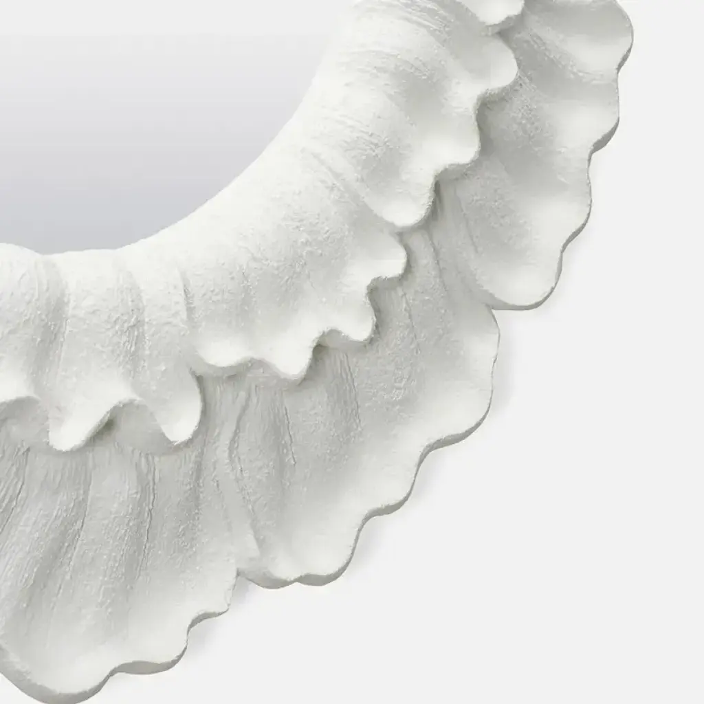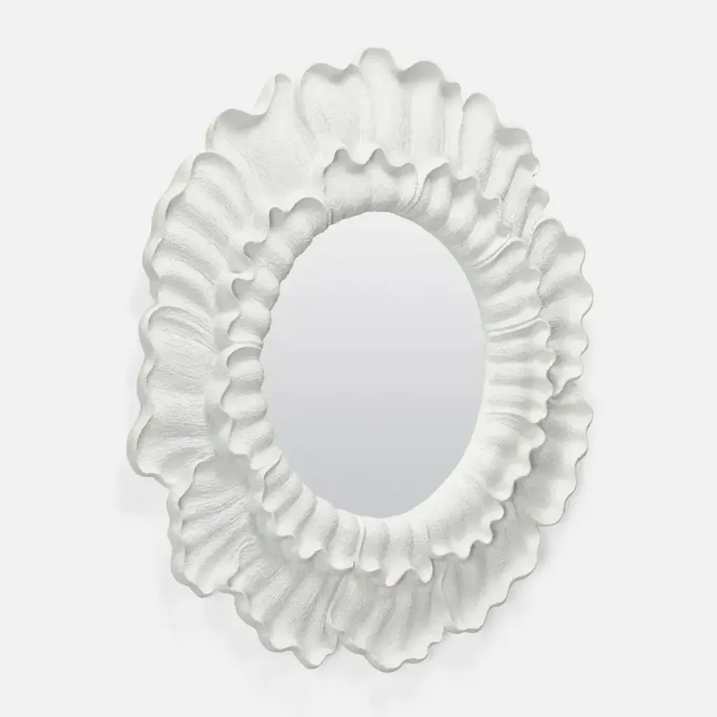 Embrace a gorgeous garden-like ambience with our Ilaria. White resin is molded into a floral motif, with textured petals surrounding the mirror.