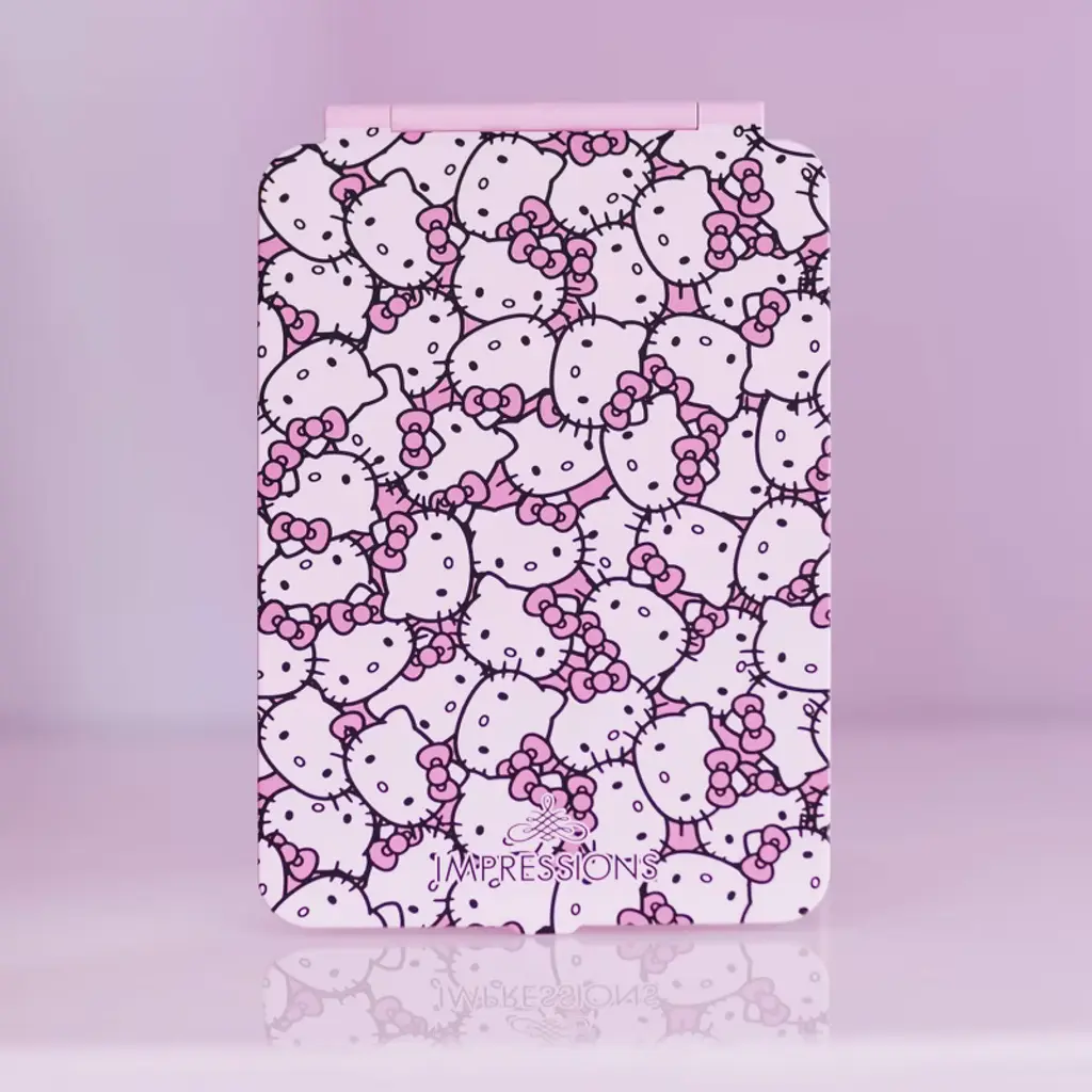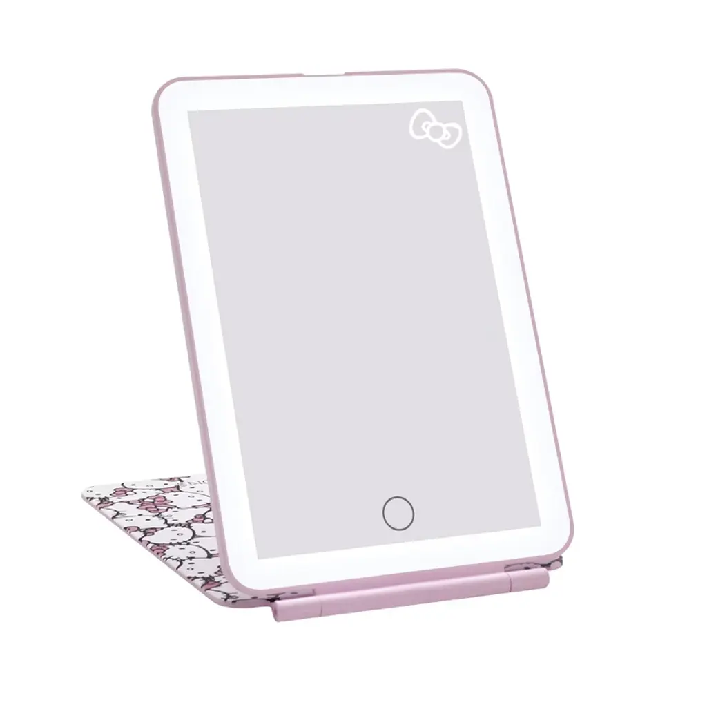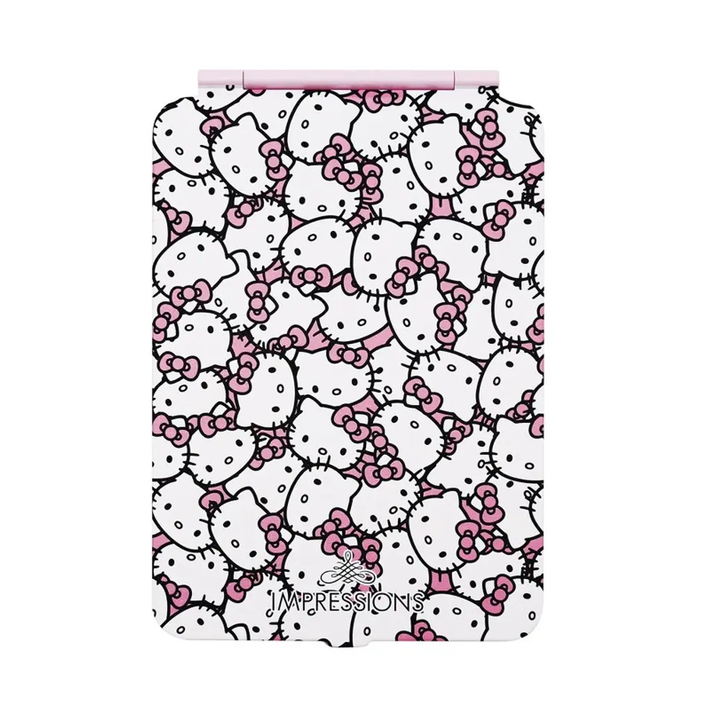 Impressions Vanity Hello Kitty Touchpad Mini vanity Compact makeup, super slim, micro USB rechargeable LED travel mirror. With consistent lighting with a dimmable LED light strip, the Hello Kitty Touch Pad Mini Tri Tone LED Makeup Mirror provides all of your get ready glam needs. Designed with a tropical animal Hello Kitty print, this mirror is unlike any other. The user friendly folio cover protects the quality of the mirror and also serves as a base stand. This travel essential vanity mirror is lightweight, compact and portable and useful in day to day life. There is 3 light mood to enjoy cool, natural, and warm believing your mood by touching up, just got super cute