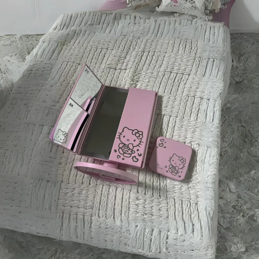 Impressions Vanity Hello Kitty (White/pink) Touch Pad Mini Tri-tone Led Makeup Mirror