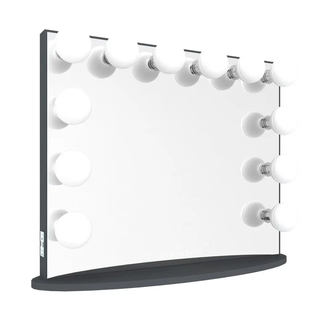 The IMPRESSIONS VANITY's Hollywood Glow Plus is our newest size offering of our bestselling Hollywood Glow Series. An ultimate statement in vanity elegance, featuring our exclusive patented Hollywood Glow Frame the unique, very chic, and modern design radiates a new brand of Hollywood glamour and simple sophistication that has made countless makeup lovers, pros and beauty bloggers fall in love. Join thousands of happy owners and let your every day glow!Special Feature:The Hollywood-style layout provides timeless aesthetic and studio-quality lightingSide-mounted accessory powerEasy-to-reach dimmer switchUSB charging portsWireless speakers for audio streaming with LED screen indicatorTouch-sensitive control panelDigital thermostat functionBeautifully handcrafted with high-quality woodMinimal assembly required, just attach the base, screw in the bulbs, plugin, and light up!Available in our signature Glossy White, Pro Black, Champagne Gold, Shimmery Silver, and Rose Gold premium finishesDimension:Mirror: 31 x 25.25 in.Length: 34 in.Width: 8 in.Height: 26.5 in.Weight: 49 lbs. !! Every occasion or your special day our vanity set plays a special role in your life !!