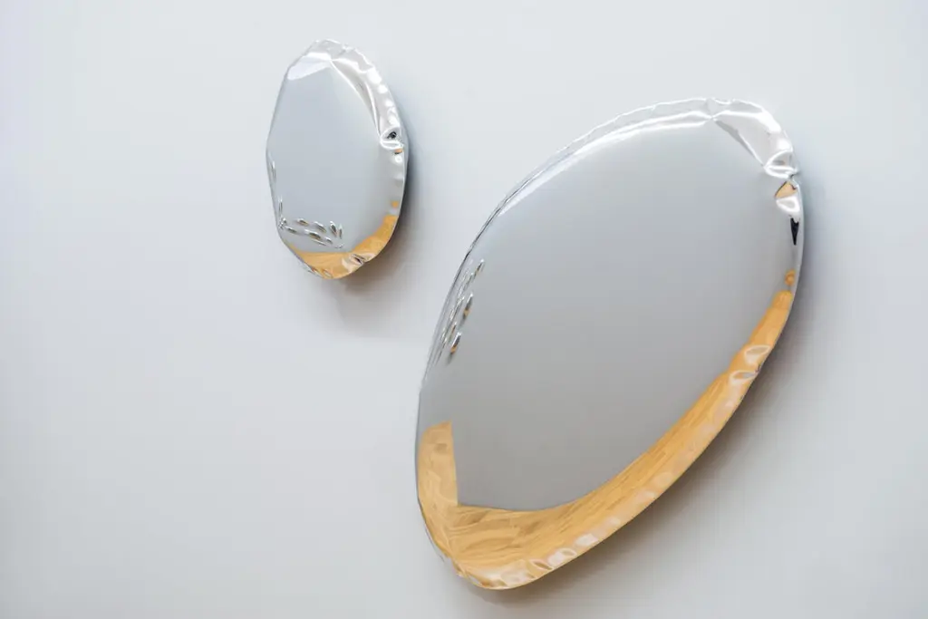 TAFLA O series is characterized by smooth, optically light shapes inspired by liquid droplets and thanks to its unique form, combines the world of design, art and technology. TAFLA collection is a radical step towards such transformations. Mirrors made with FiDU technology are a result of free deformation caused by high internal pressure. This process creates objects of great durability yet of subtle structure. Available in emerald color, sapphire color, gradient of emerlad and sapphire color, dark matter color, and deep space blue color. About the artist/ designer:Oskar Zieta – an architect, designer, artist and innovator. Born in 1975, after he graduated architecture at Szczecin University of Technology in 2000, he has got a scholarship at ETH Zurich. Over the course of 2 years of postgraduate studies he developed skills in parametric design and modern manufacturing technologies finalized with PhD graduation. Currently he runs the department of industrial design at School of Form. Laureate of many prestigious awards in design and technology. Inventor of FiDU - inner pressure metal forming technology - the keystone to Zieta Collection, Zieta Out of Ordinary as well as large scale sculptures like NAWA on Daliowa Island in Wroclaw and WIR in Galeria Pólnocna in Wroclaw.Ambassador of Warsaw Home & Contract Fair. Oskar Zieta has been awarded the AUDI – Mentor-Price 2011, the Red Dot Award 2008, DMY Award for Innovation in production process 2008, the YDMI 2008, the German Design Council Prize 2009, the Forum Aid Awards 2009, Technology Award Materialica 2009, MUST HAVE Design Lódz 2011 and was nominated to Mies Van Der Rohe Award 2019, the Schweizer Design Preis 2009 and the Dobry Wzór 2009. His designs carved out their way into numerous prestigious collections including Centre Pompidou in Paris, the Pinakothek der Moderne in Munich, Zurich Design Museum and the Baden State Museum In Karlsruhe.Oskar Zieta is a CEO of Zieta Studio established in 2010 in Wroclaw. The company is an interdisciplinary team of architects, designers, engineers and technologists as well as production line and industrial implementation workers. Specialists in many fields are permanent collaborators of Zieta Studio - psychologists, biologists, scientists and many others. FiDU Innovation Lab develops its own, innovative technologies of stabilizing sheet metal, i.e. FiDU and 3+ and their application to modern architecture, engineering and design.